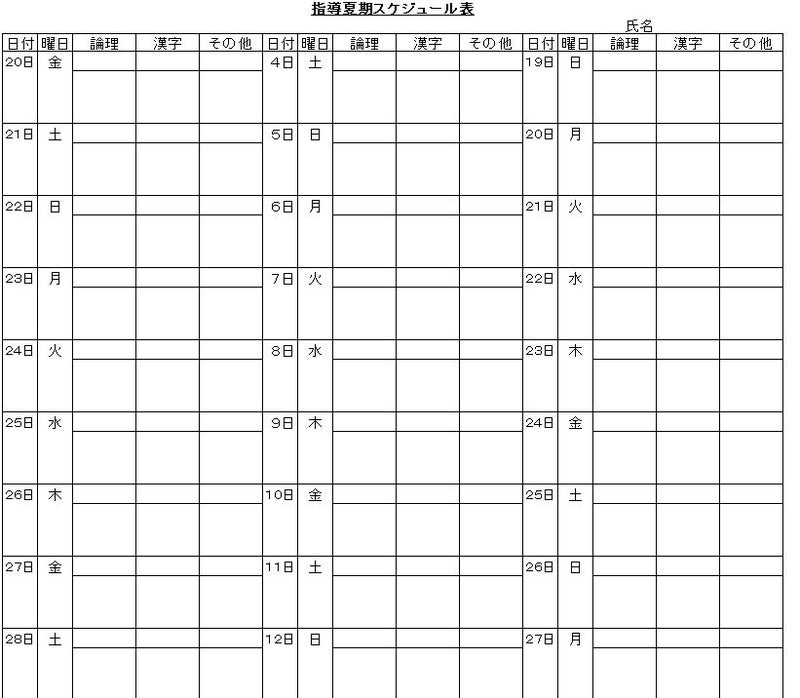 夏休みの計画の立て方