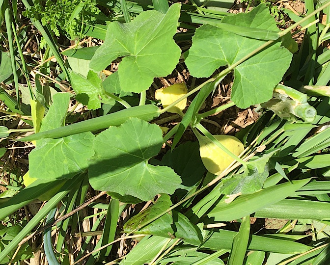 ネギは引っこ抜いて、根っこを15cmくらいに切って、カボチャの下に敷いて植えたよ〜!