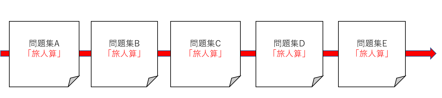 どんなことをするのか?こんな方法です。問題集を5冊買ってきてその5冊で同じ単元だけをするのです。