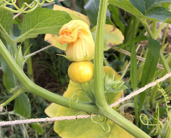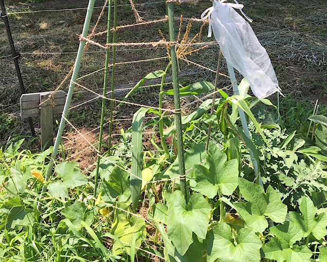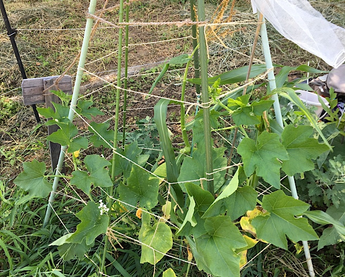 一株に4つも雌花ができてる株があったので、雄花に一番近いコを残して、収穫しました。