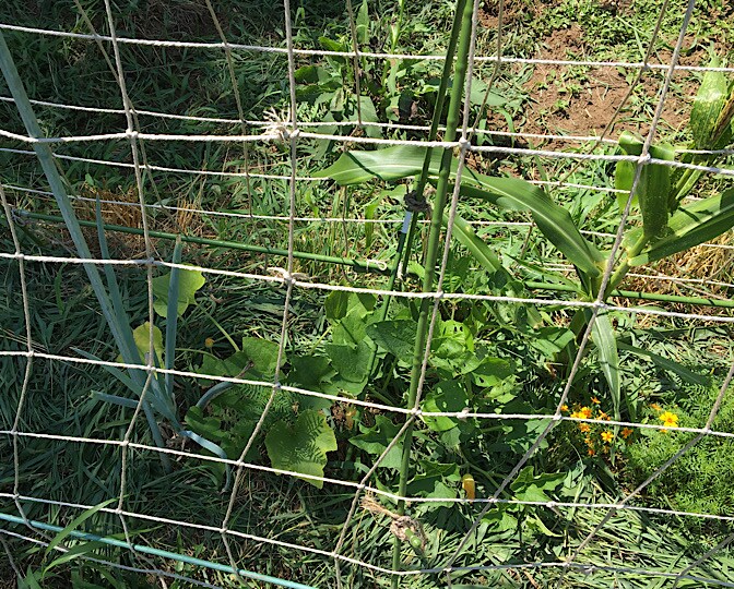 玉ねぎネットの下では、エダマメがしっかり育ってました。