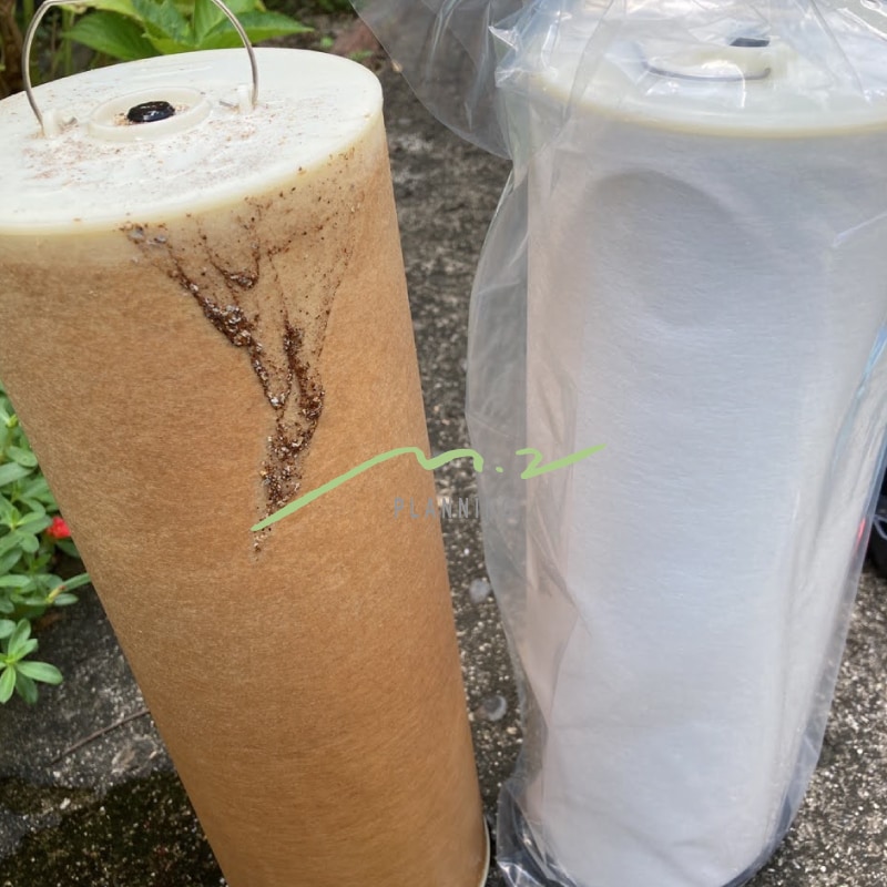 フィルターも茶色で、上部にたまった赤錆が垂れ落ちてきていました![]()