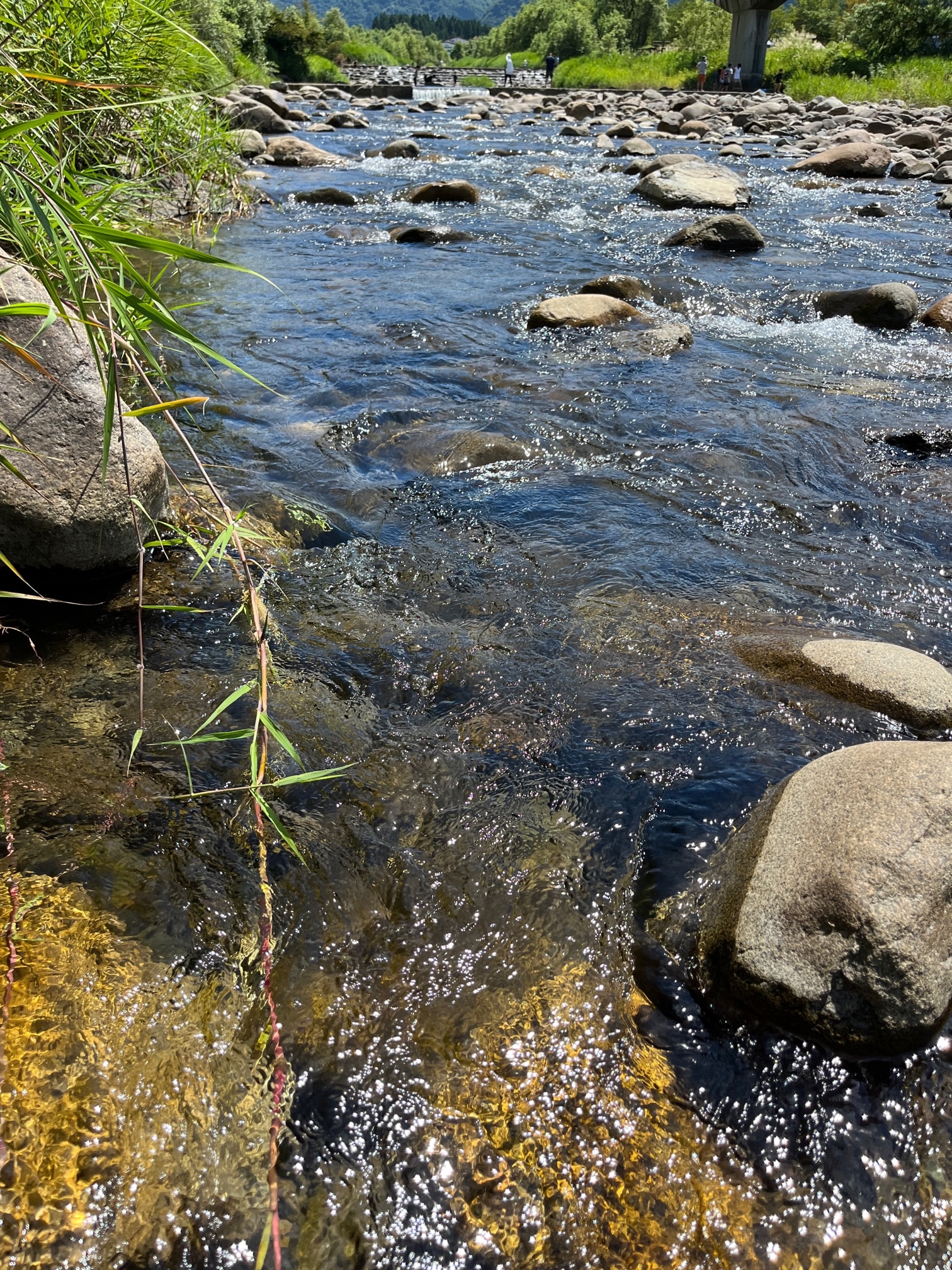 渓流でオタマジャクシ取りに夢中になり(最後はリリース)