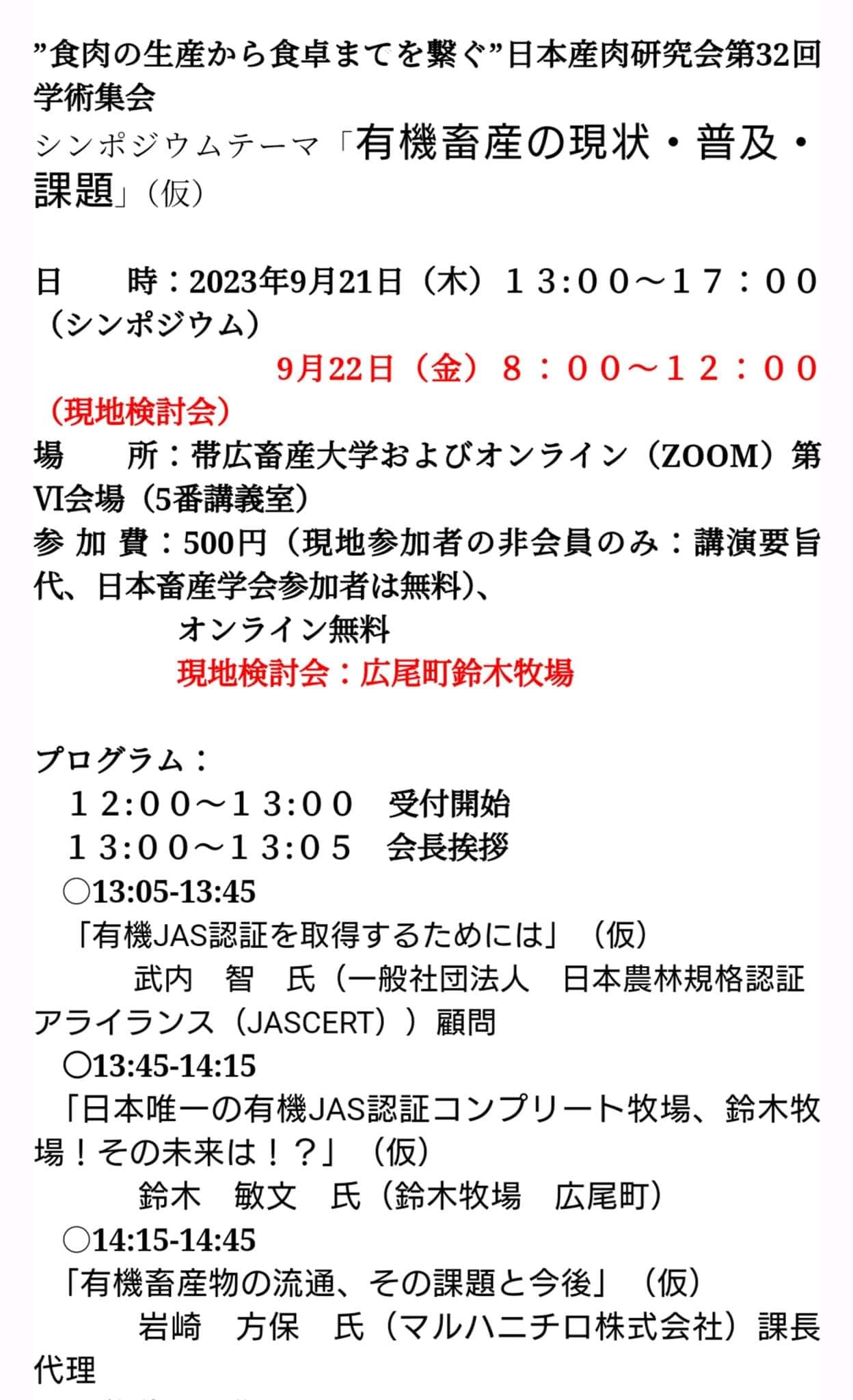 ※詳細と申込みは日本産肉研究会のホームページからどうぞ