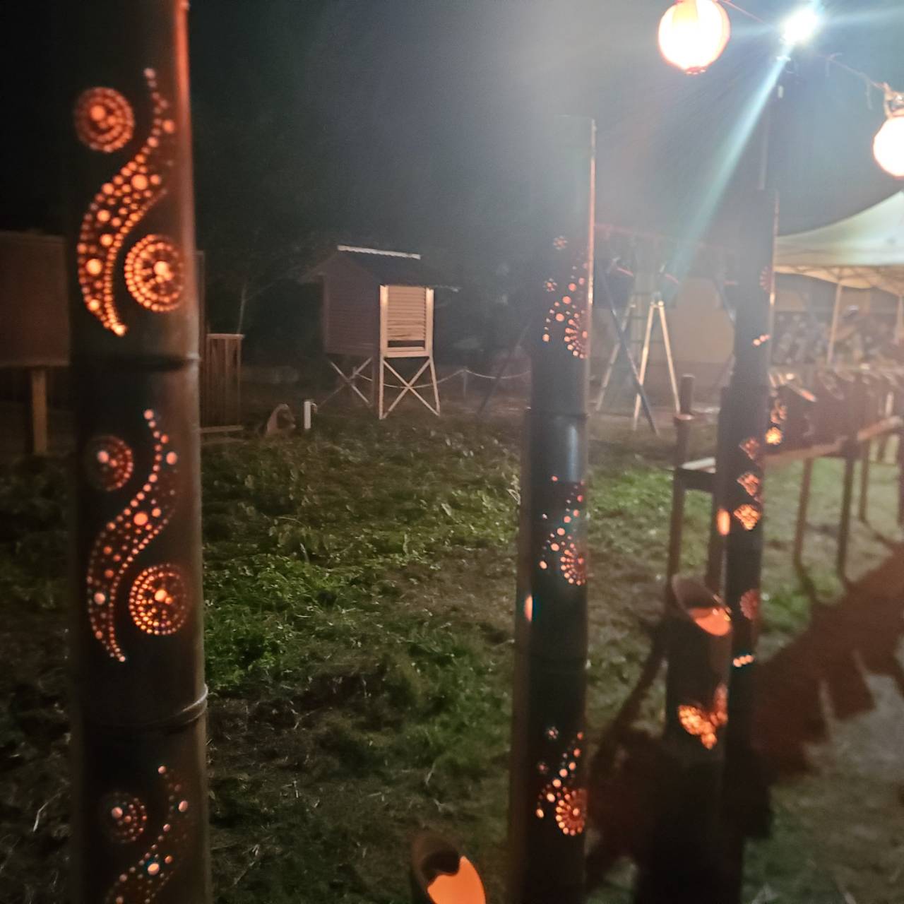 『竹灯篭』も7月上旬から製作に取り掛かり、地元の皆様に手伝って頂き、時間のない中で御協力頂いたおかげで110個の竹燈籠を完成させ、夏祭りを彩ってくれました。
