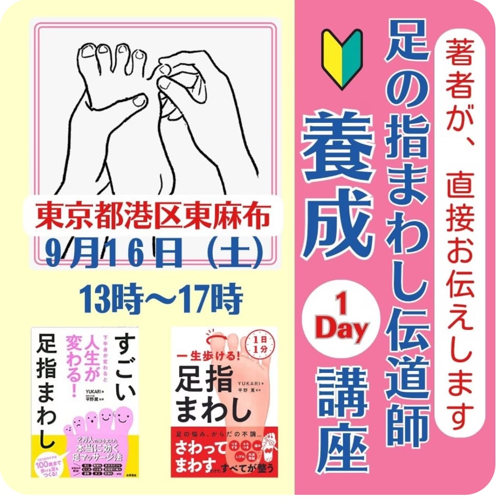 自分のためにも「基本のケアを、解剖学的にも学びたい」と言う方は、「足の指まわし伝道師養成講座」を受講してくださいね。