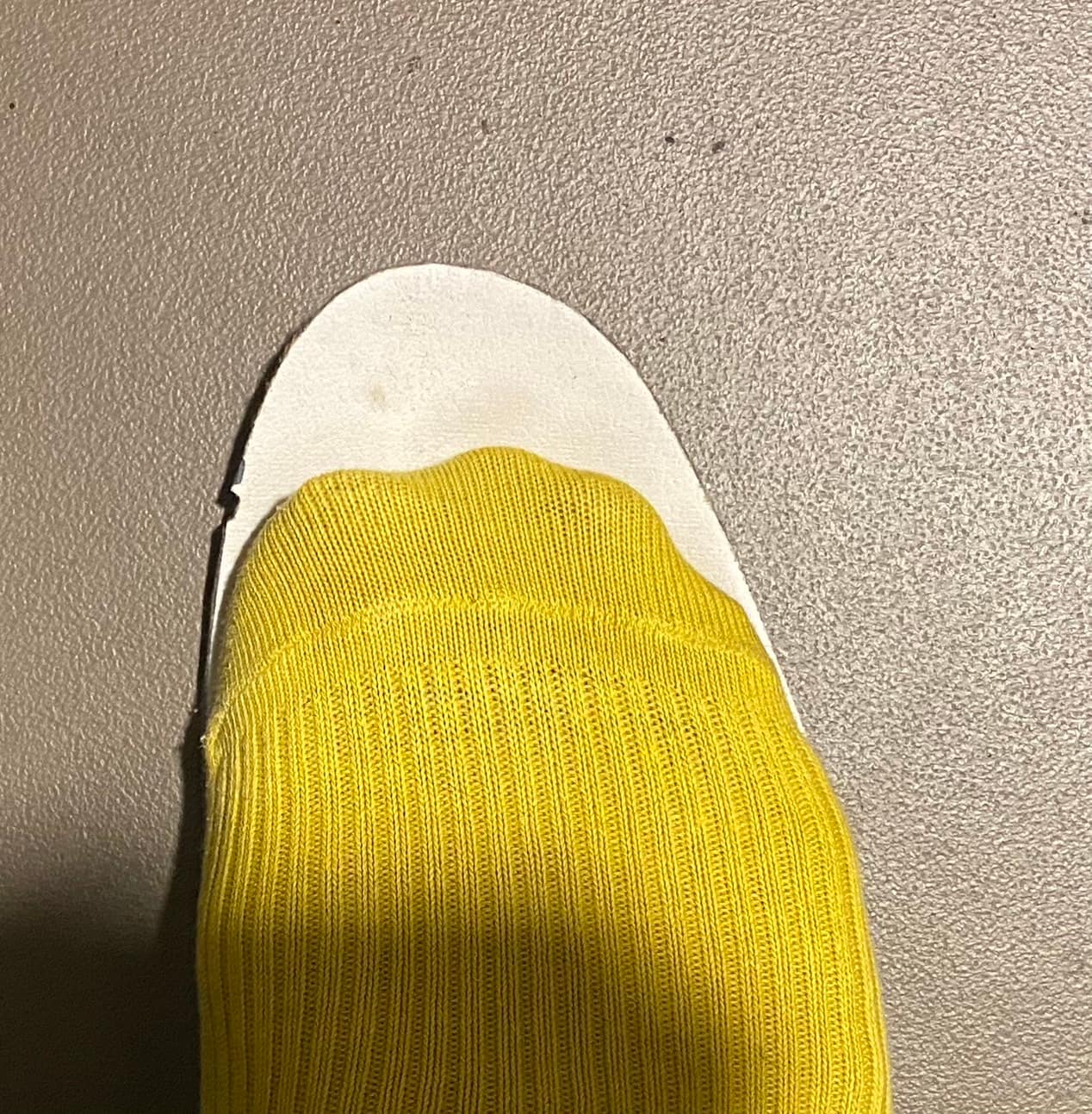 ちゃんと靴を履いていてもこれだけの変化というか曲げ伸ばしが起こり、中敷きに跡を作ります。