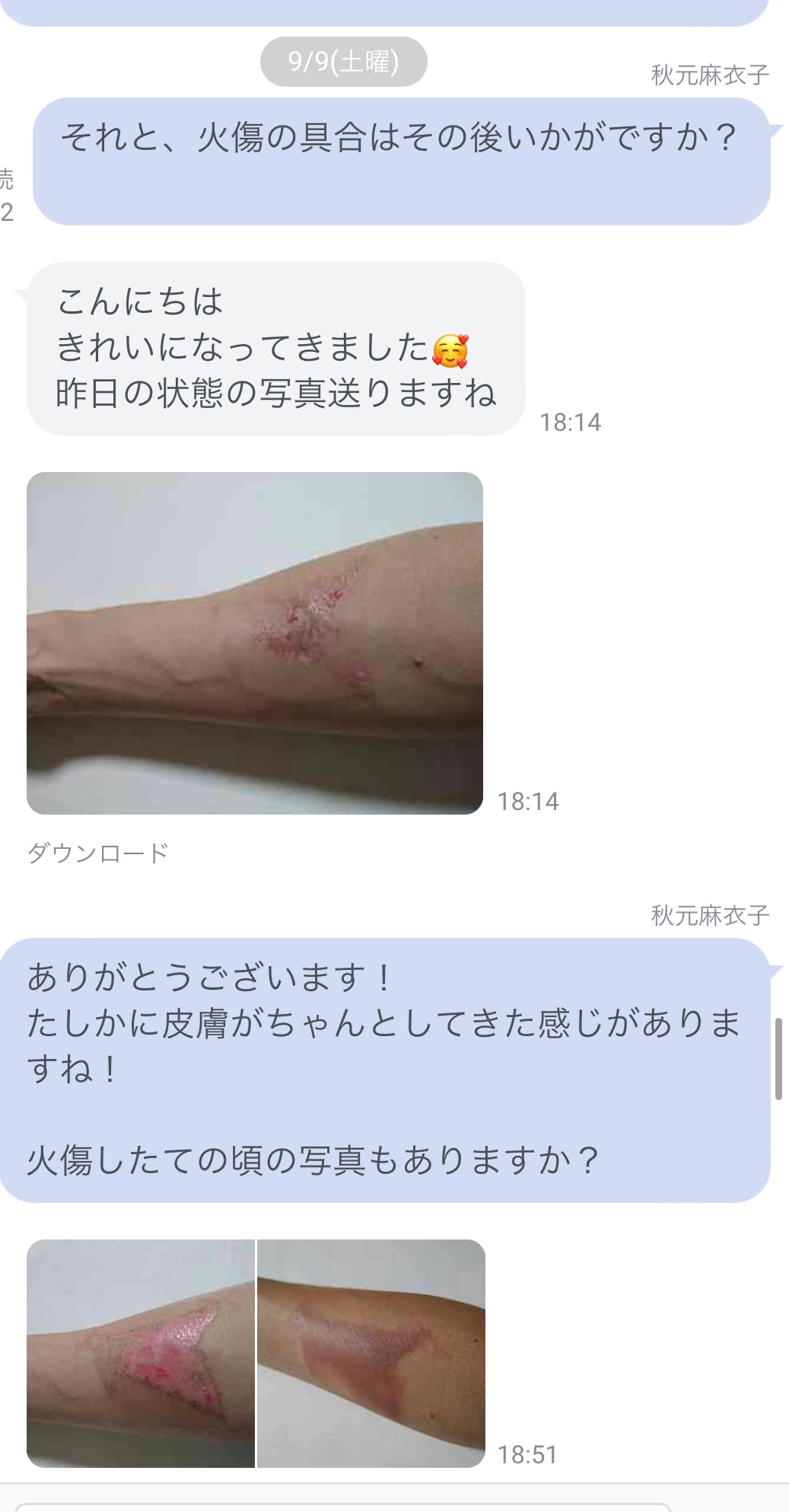 経過写真を見るだけでも、火傷当時より肌が再生してきました。
