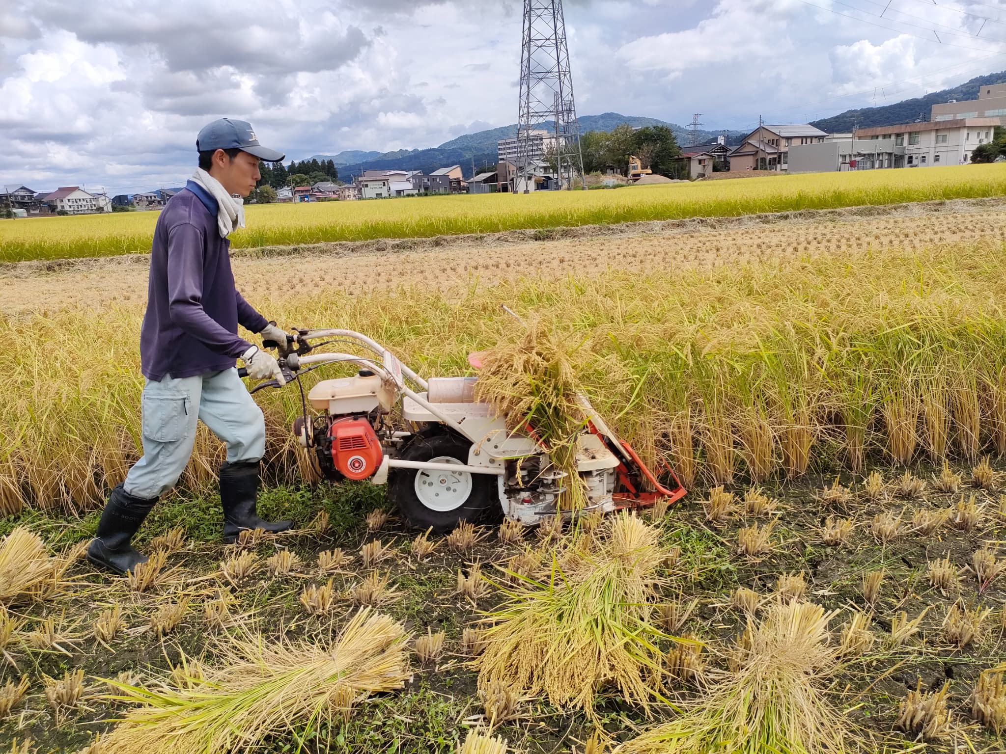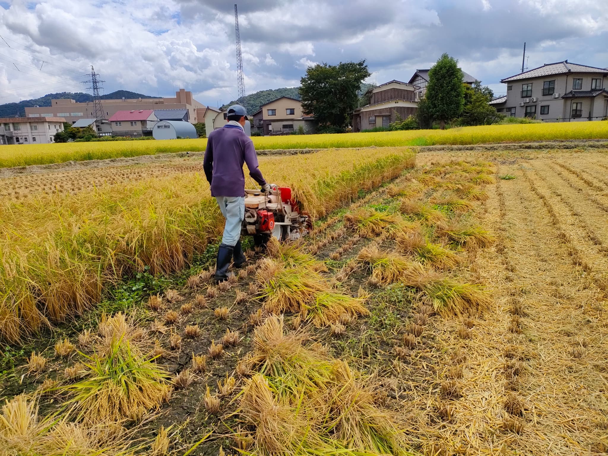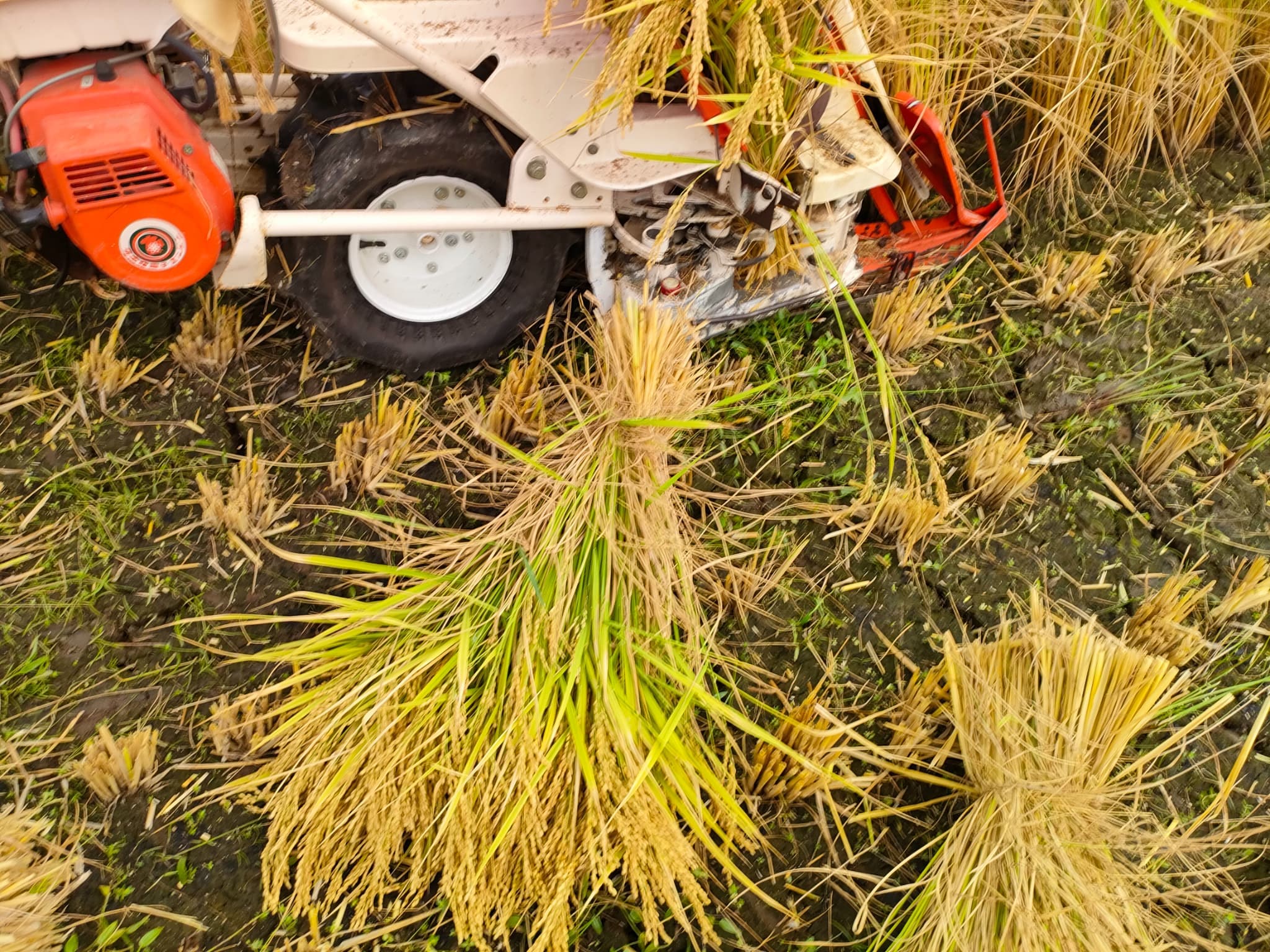 こちらはコンバインではなく『バインダー』という機械で刈ります。