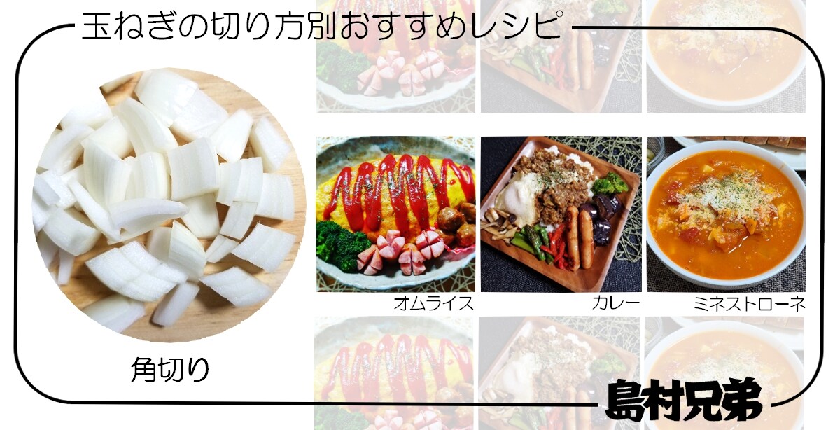 角切りは、他の食材と形を合わせたいときに向いています。食べごたえがあり、玉ねぎの食感をしっかり感じることができます。