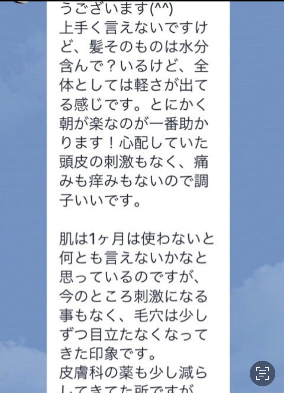 頭皮・お肌のトラブルで、お悩みのN様からのLINE。