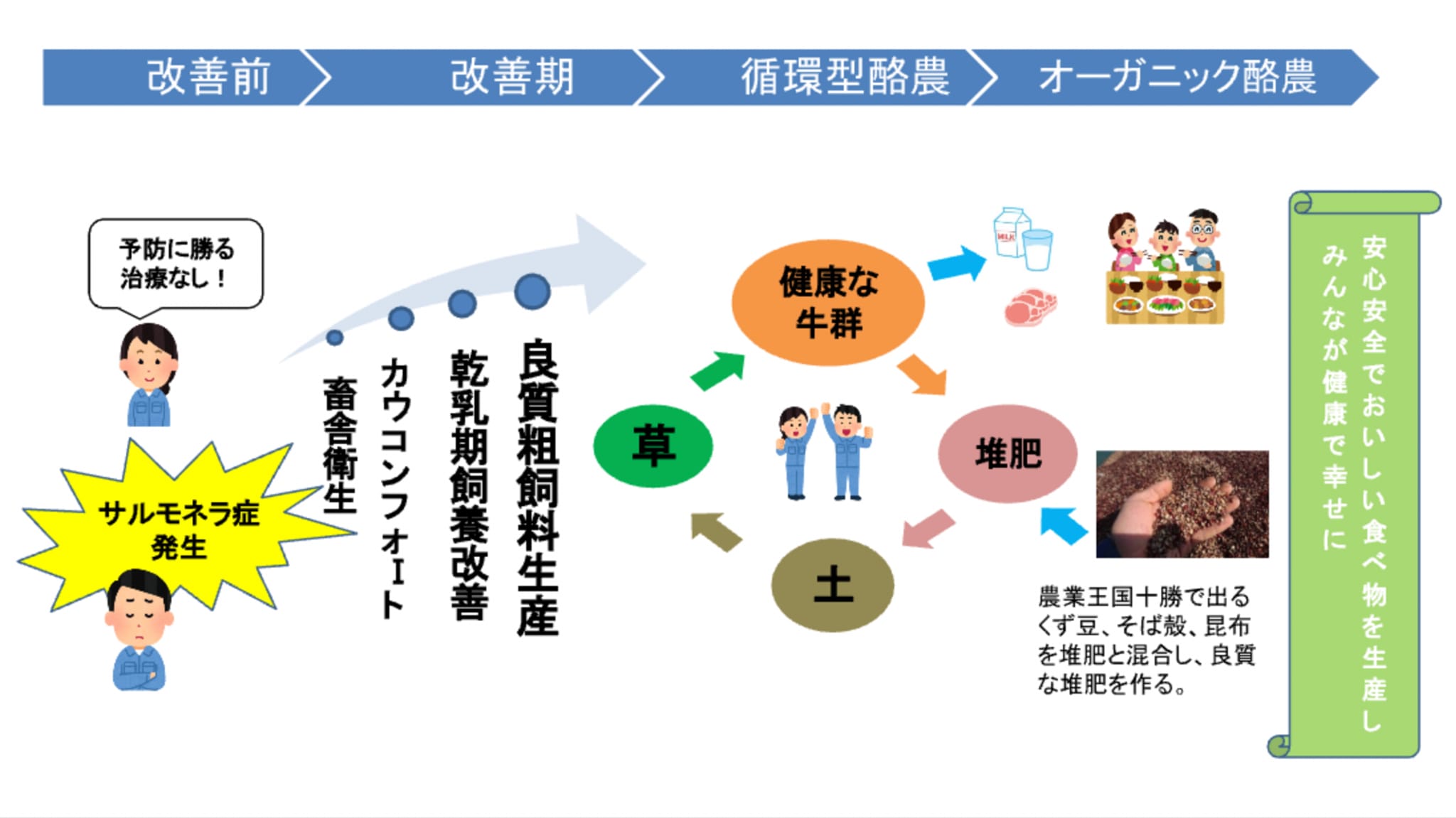 世界情勢や地球環境への見通しが難しくなる中、人間が食べられない、そして再生可能な資源である牧草を餌にして、乳・肉という形で食料を作り出してくれる酪農は、「持続可能な農業」や「食料安全保障」の観点から、未来の人類にとっても重要な産業と位置付けられるはずという思いがさらに強くなりました。