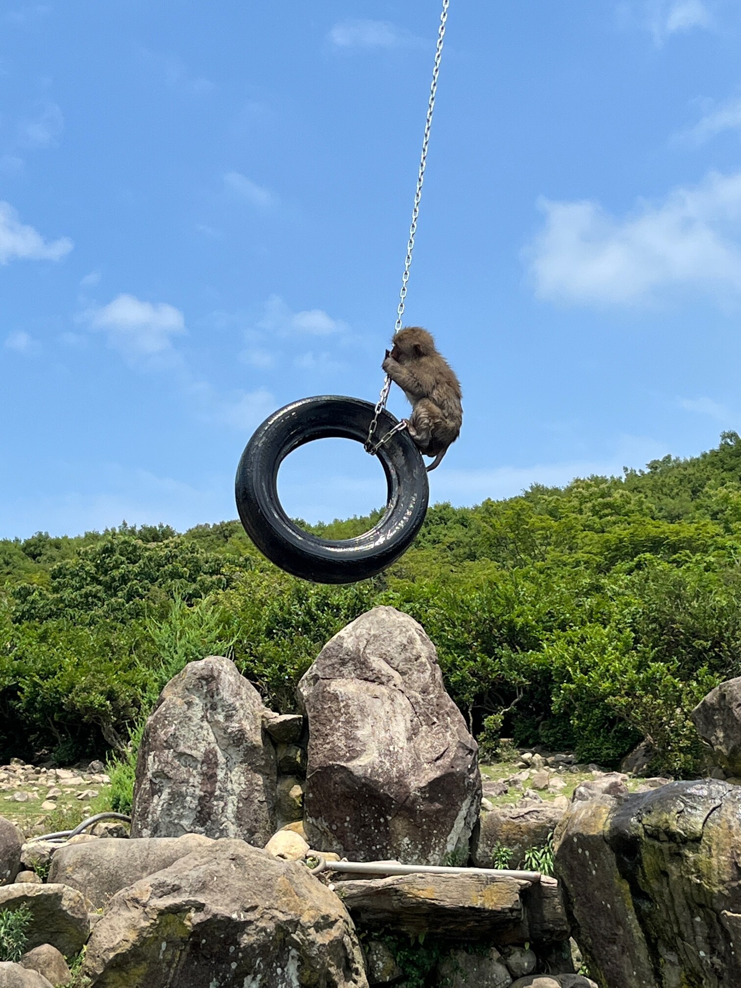 銚子渓のお猿の国。猿の住処にお邪魔したような感覚。親子で寝ている猿もいれば、子供が楽しく遊んでいたりとスリルと癒し両面楽しめます。