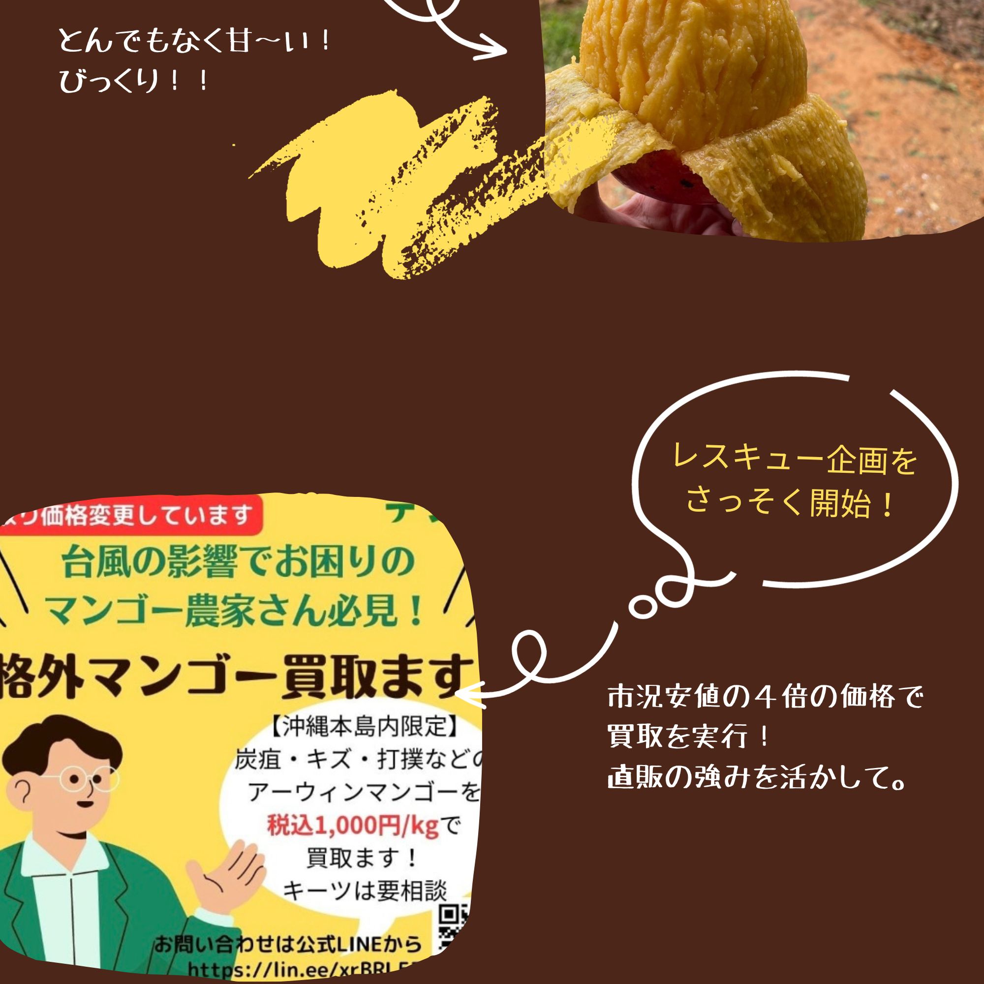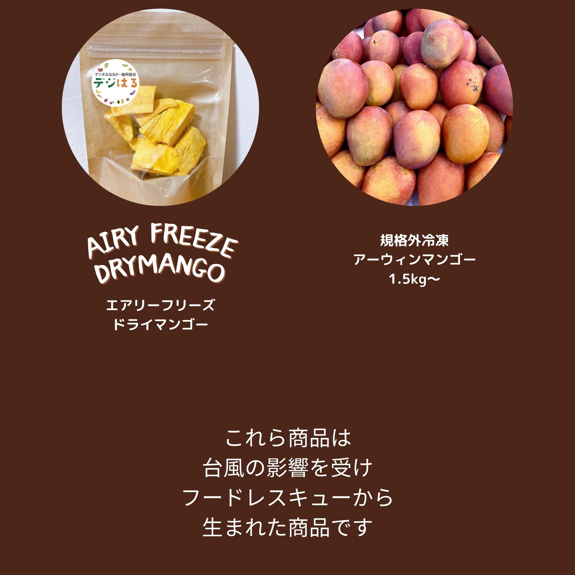 デジタルはるさー協同組合(代表理事:新垣 裕一)は、株式会社すえひろ(代表:徳元 春雄)の協力のもと、台風の影響を受けた規格外マンゴーを活用した3商品をリリースしました。