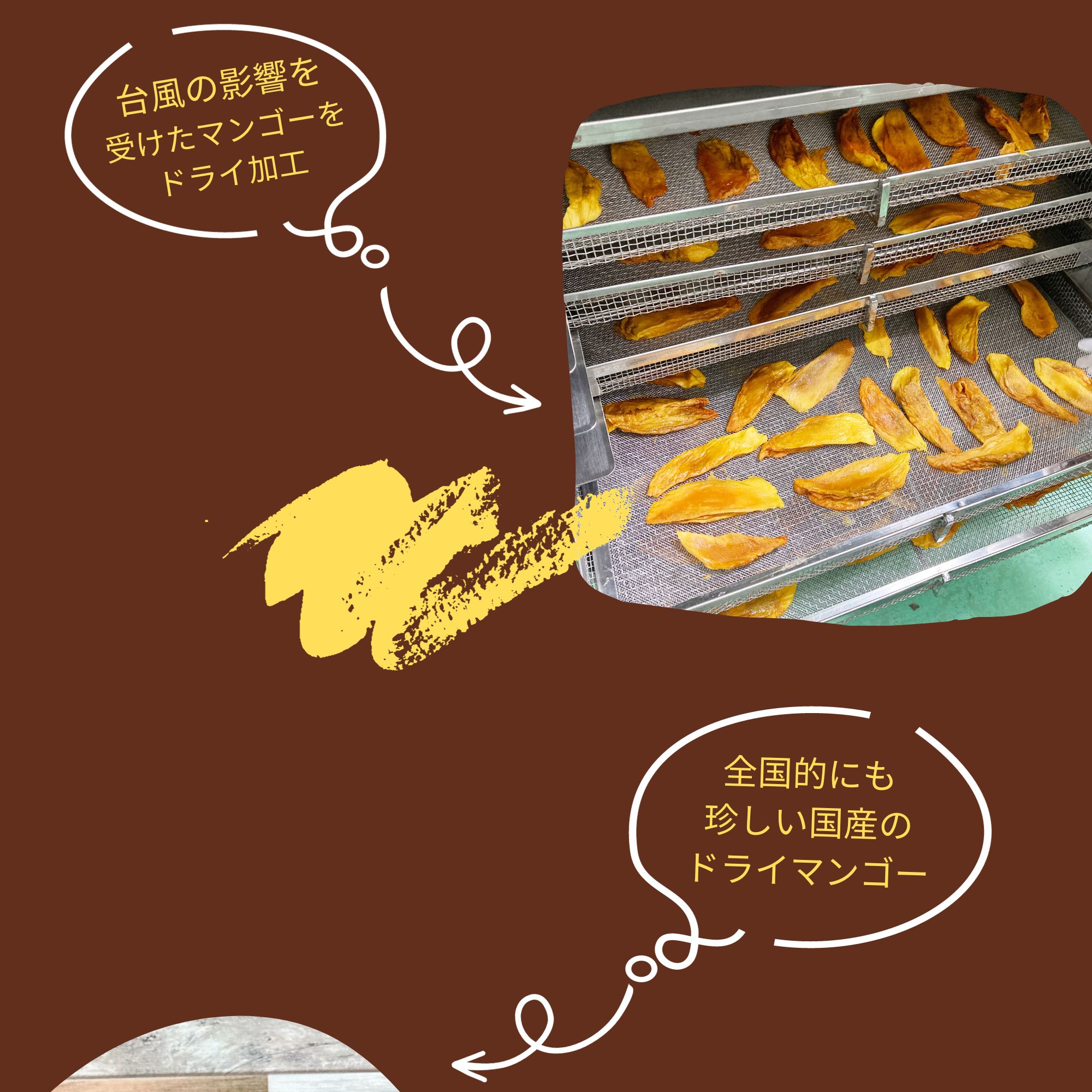 沖縄農業は毎年台風の被害、またはリスクにさらされています。本事業の目的は、台風被害を受けた農産物をフードレスキューし、これらの農産物を1次加工品(セミドライ、ピューレ、パウダー等)に特化した商品にすることを通じて、地域の食品流通を改善し、台風被害の軽減を目指します。