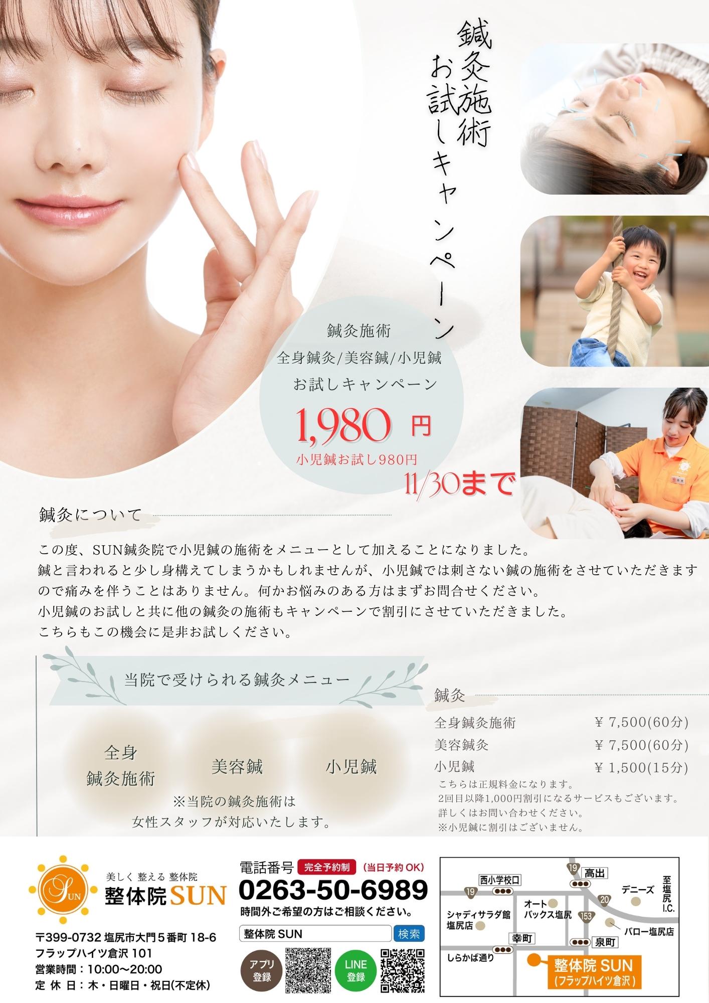 今回11/30まで鍼灸施術のお試しキャンペーンを行います!