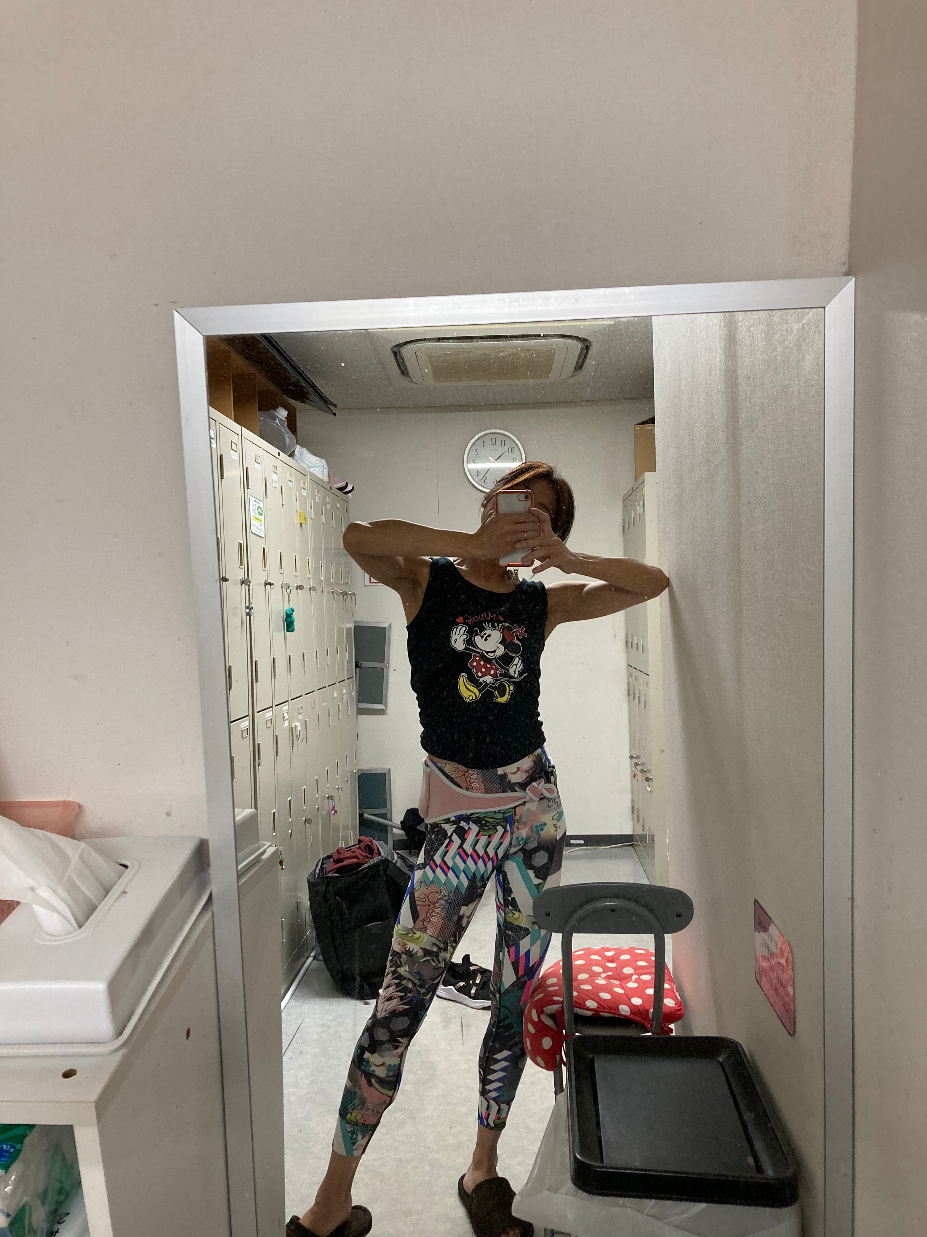 今朝は、テレビで、ディズニー特集をやってて、ミニーちゃんかわいいなーと思ってミニーちゃんウェアーにしました😊✨💓