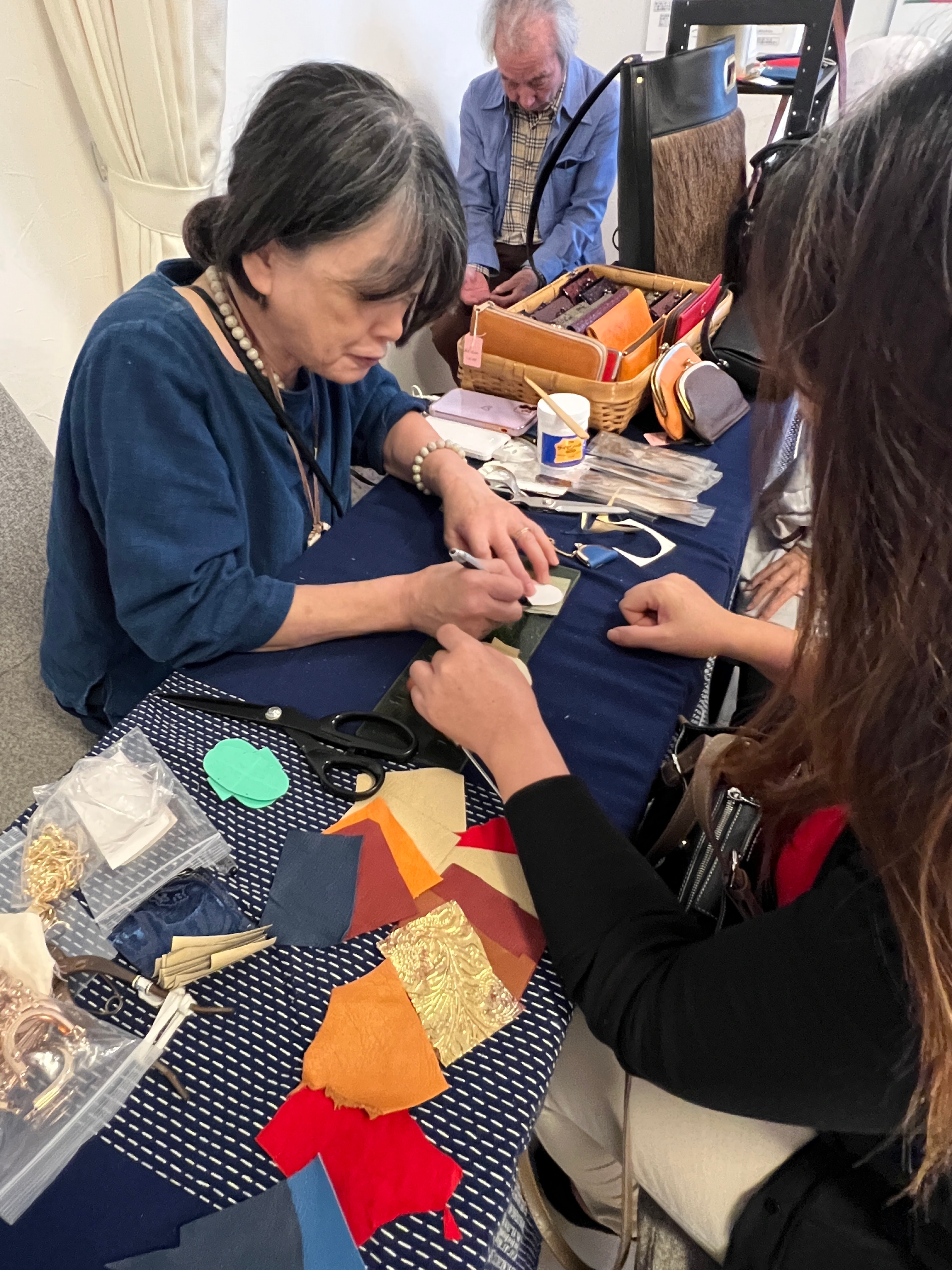 宮崎から参加してくださった河野恵子さんは鹿の皮で小銭入れワークショップ!