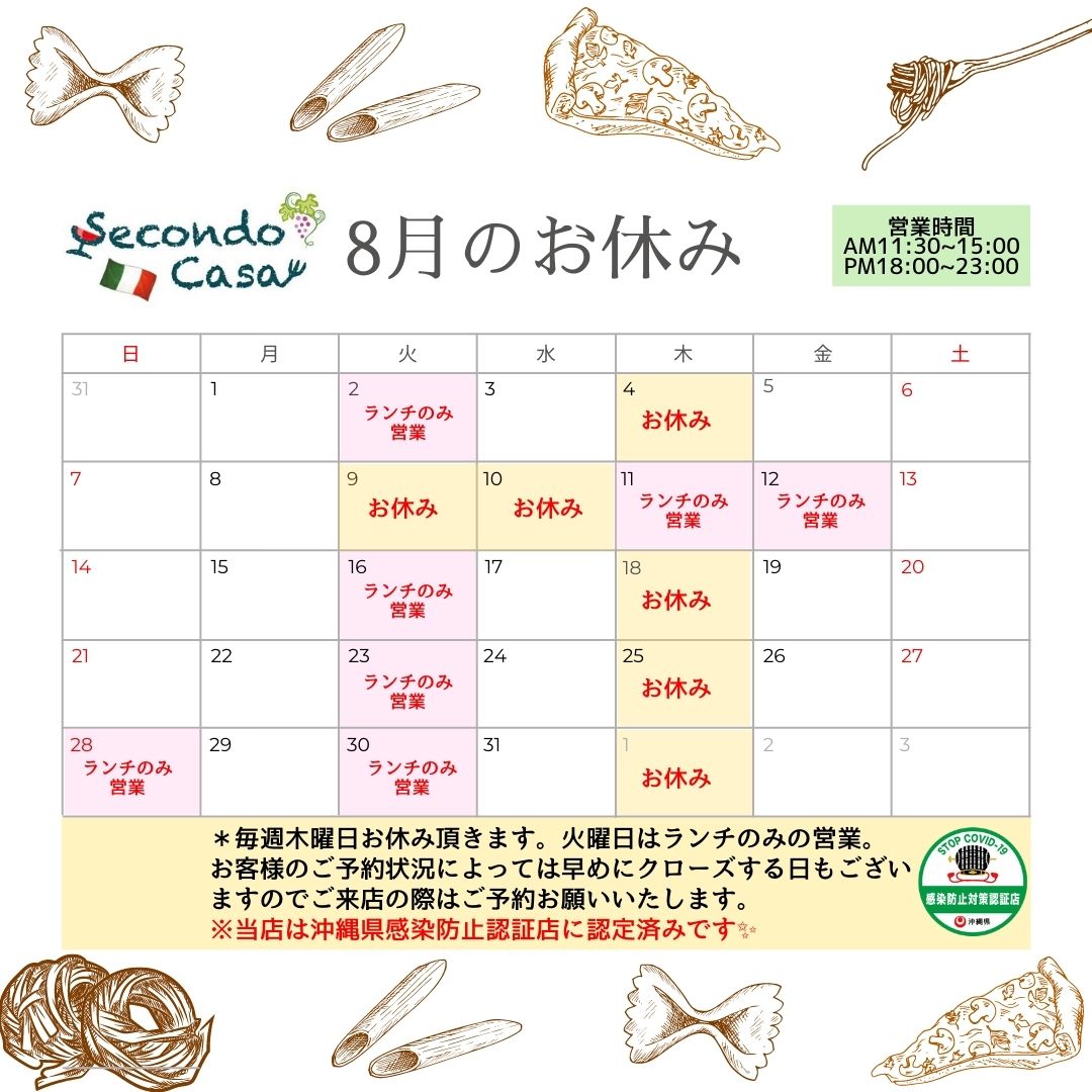 8月のお休みのお知らせ♪