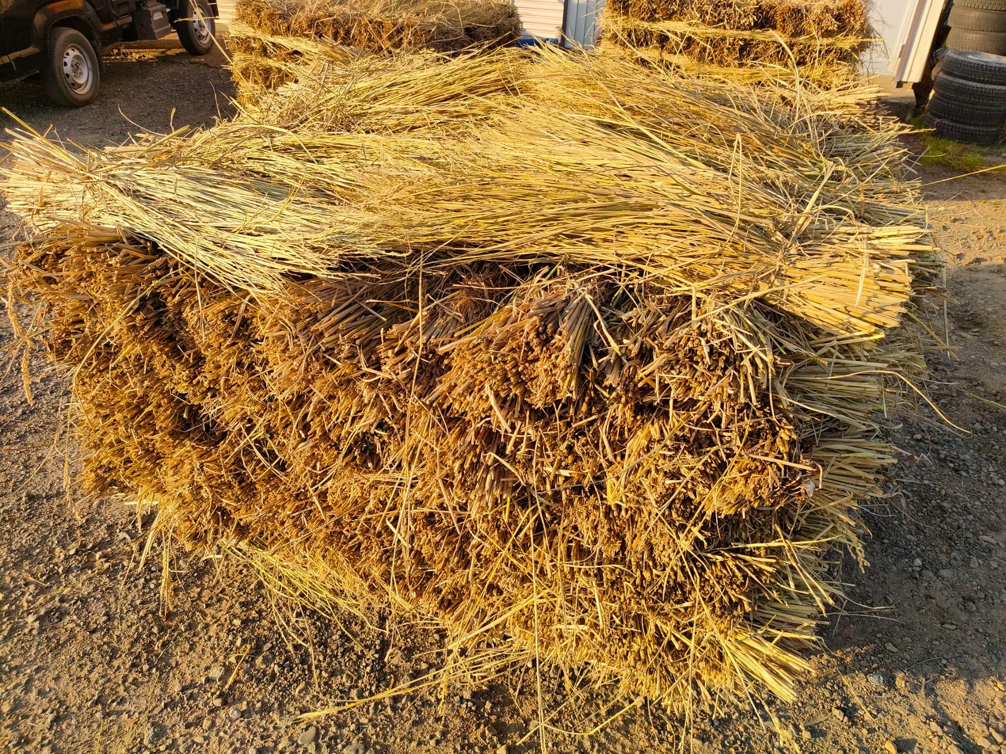 ワラの束がたくさん。