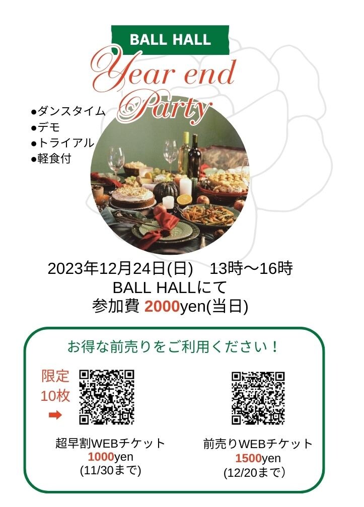 【前売券】2023年YEAR END PARTY25%OFFチケット - BALL HALL バルホール (tsuku2.jp)