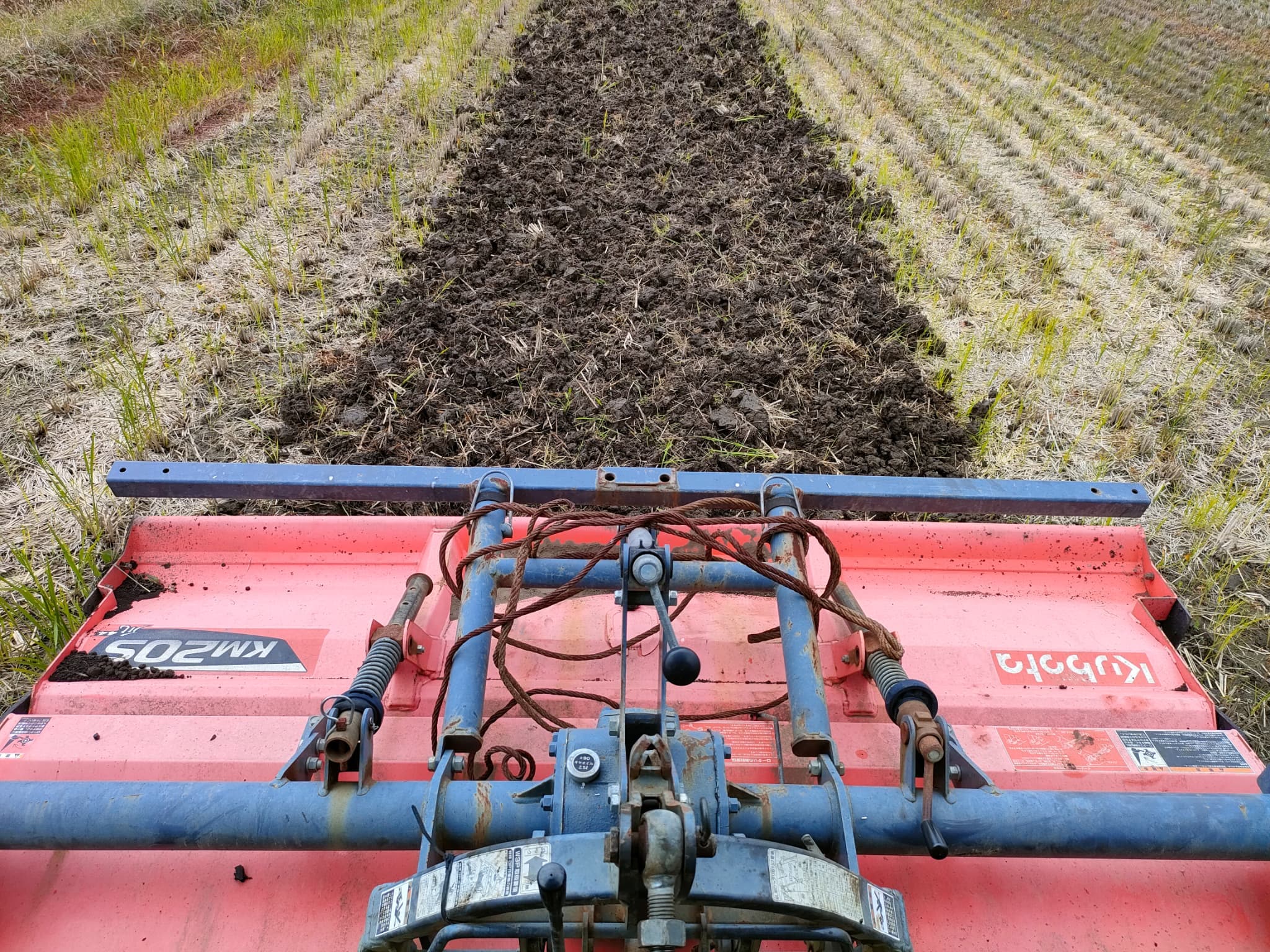 徹底している方はフレールモアで稲株も粉砕してから耕耘して分解を更に促進しているそうです。