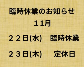 明日は臨時休業、明後日祝日の木曜日は定休日となっております。