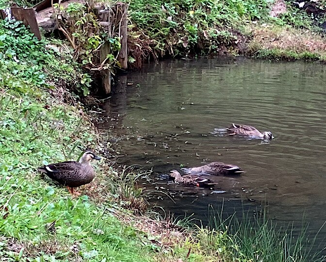 池に鴨が…。