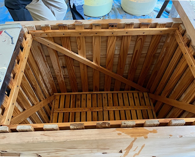 醤油絞りの槽(ふね)は、町田・相模原でお醤油を作っている数グループの共用なんです。