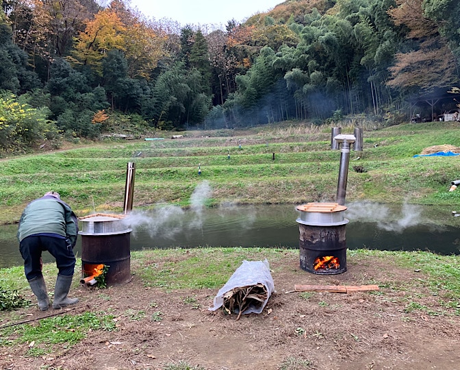88℃になったら火を掻き出して、冷ますべく樽に移しちゃー窯へ戻す…てのをやってました。