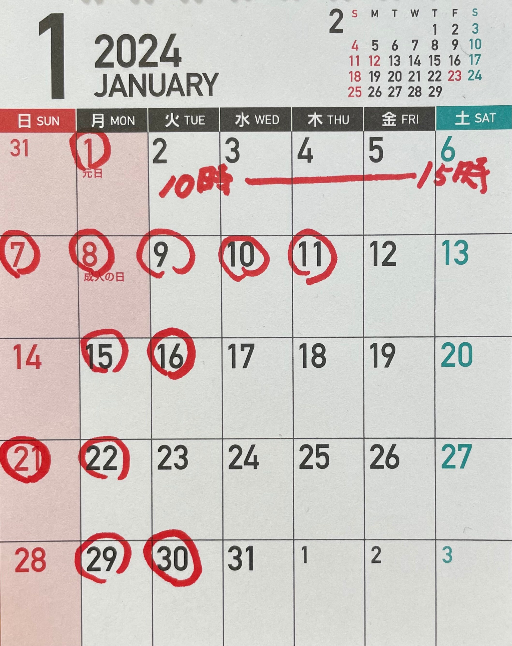 1月のお休みになります。