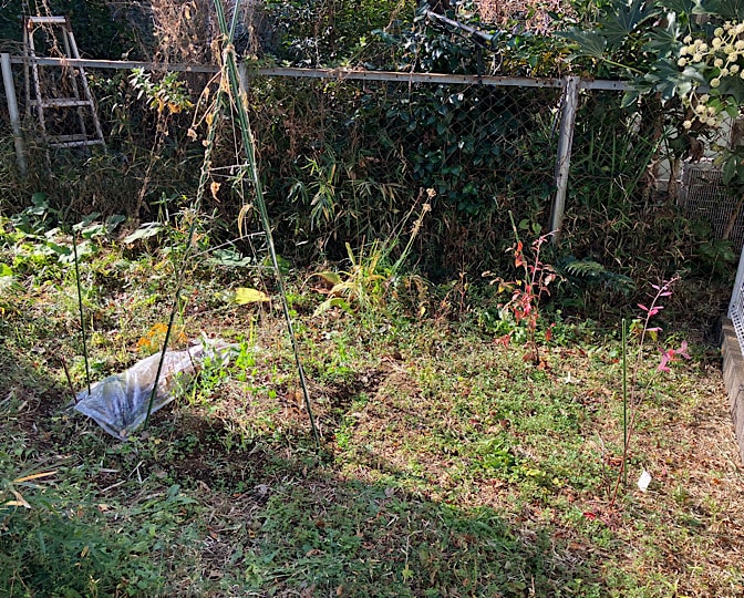 庭に生えてきた木を切ったのがまとめてあったので、そこから枝をもらいました。