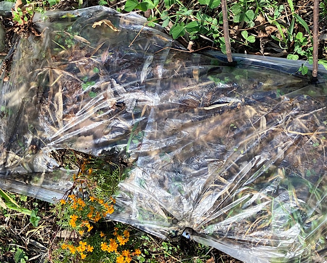 なんちゃって菌ちゃん農法をやってみてる、ビニールの下と、