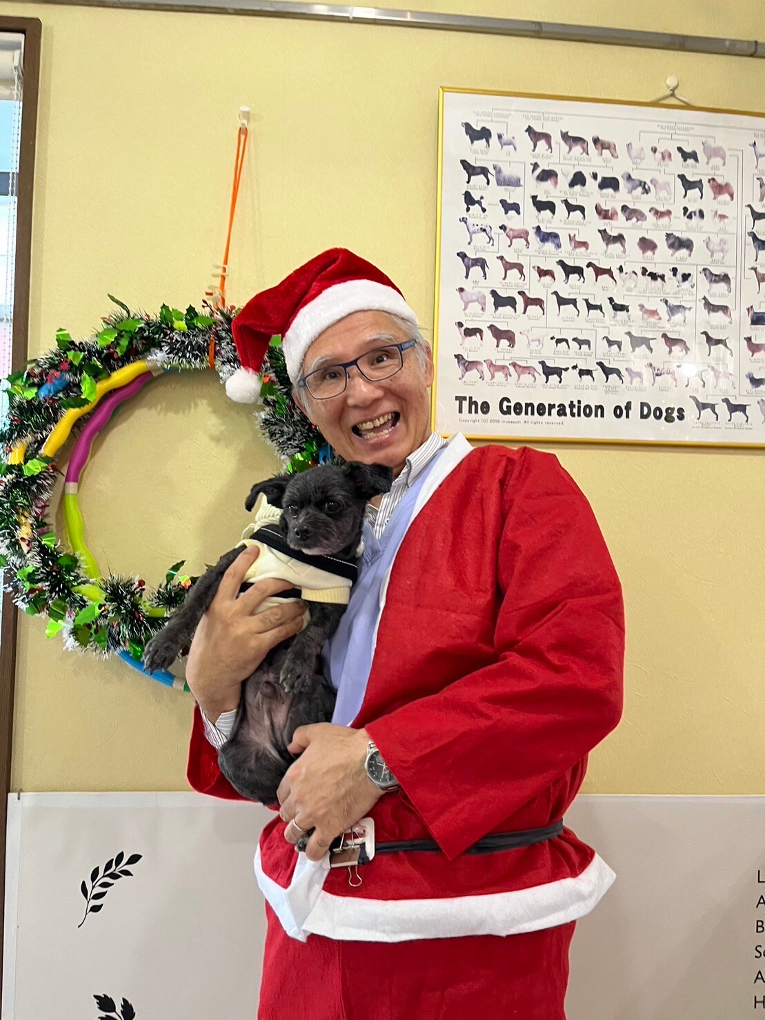 サンタさん姿で往診治療しました。超可愛い「こてつ」ちゃんと記念撮影。