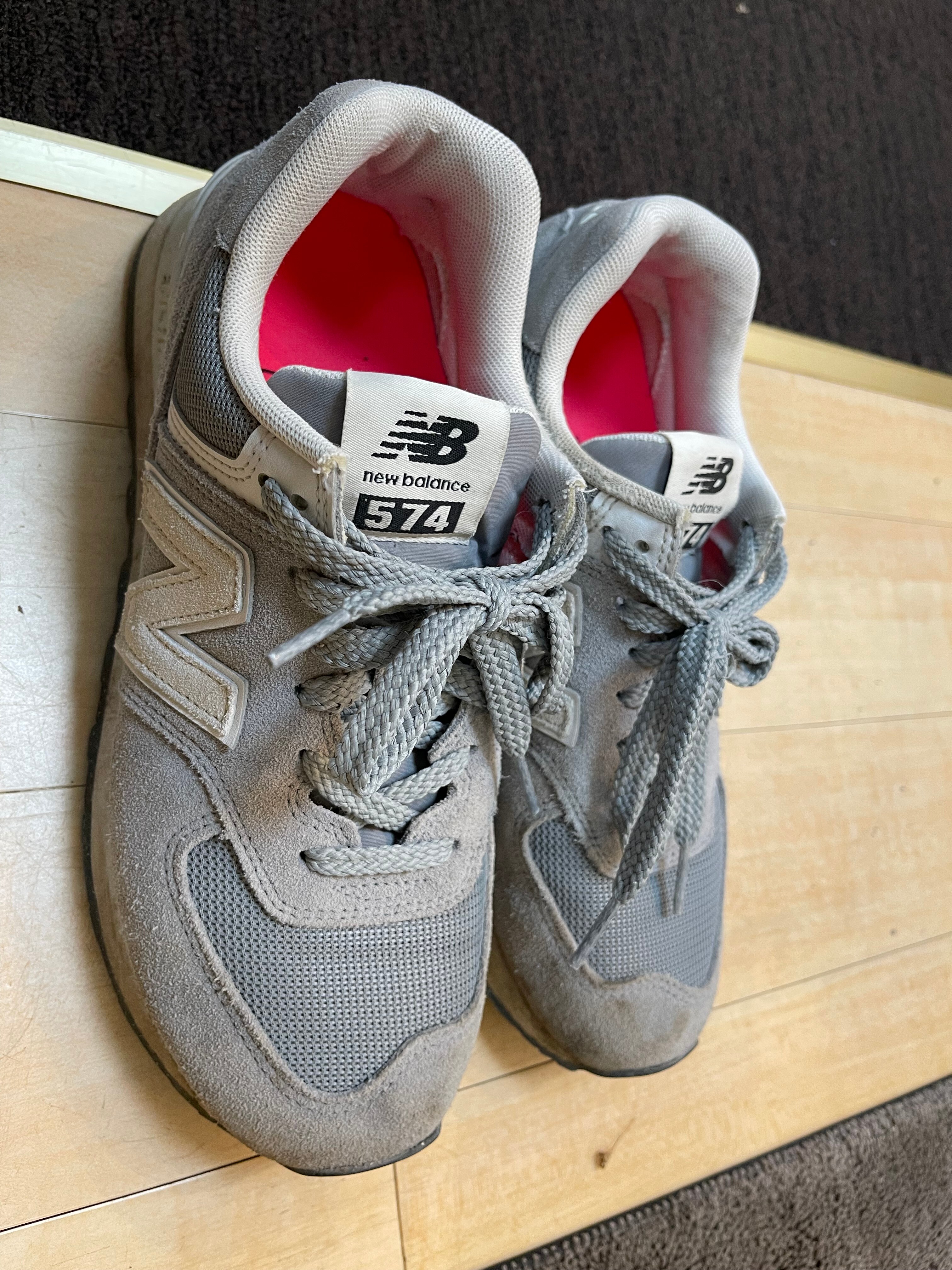 574は人気で履きやすく、横幅2E展開してるので外反母趾の方におすすめです!
