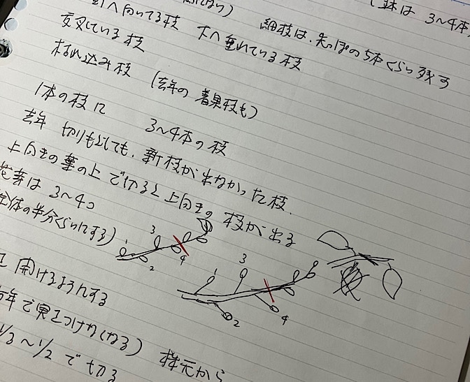 小さい枝や、重なる枝、枯れ込み枝、内側に伸びてる枝を切りました。