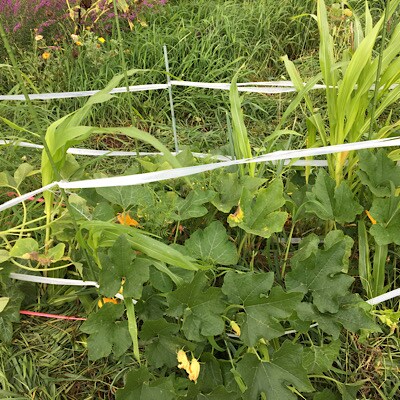 カボチャ・トウモロコシ・エダマメ・ニラ・クリムソンクローバーでした。