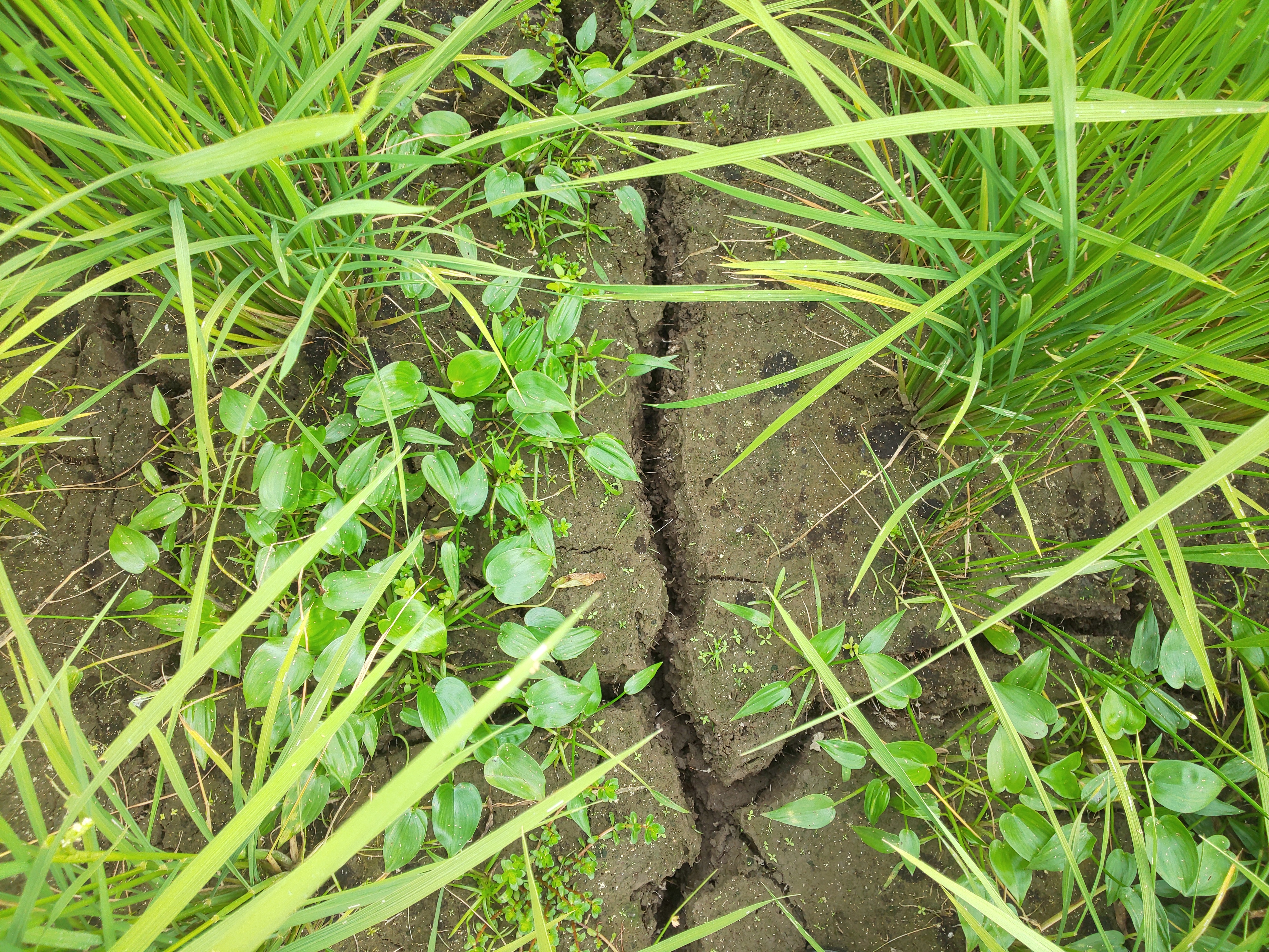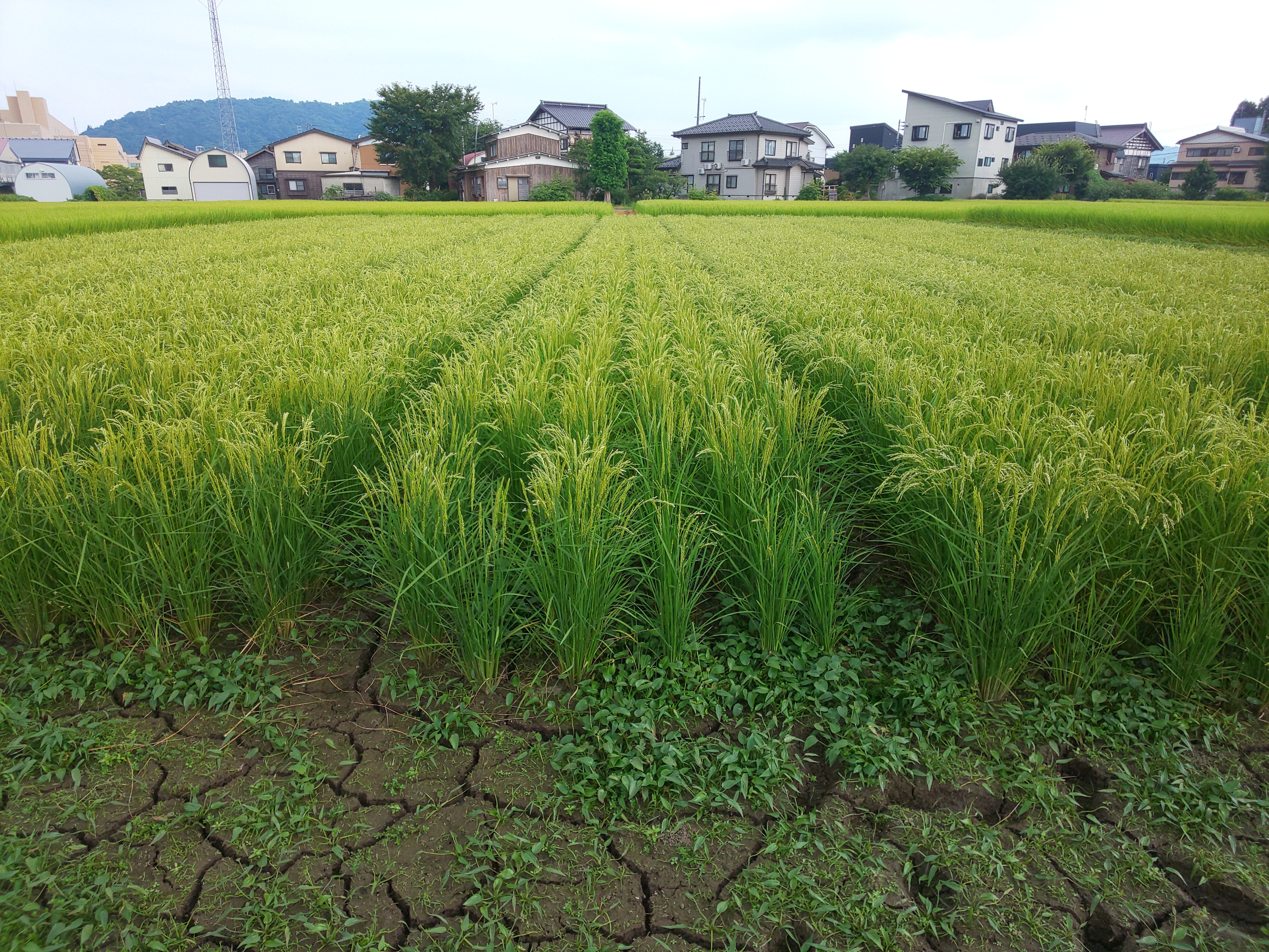 こちらの田んぼは収穫に向けて落水して乾かしています。