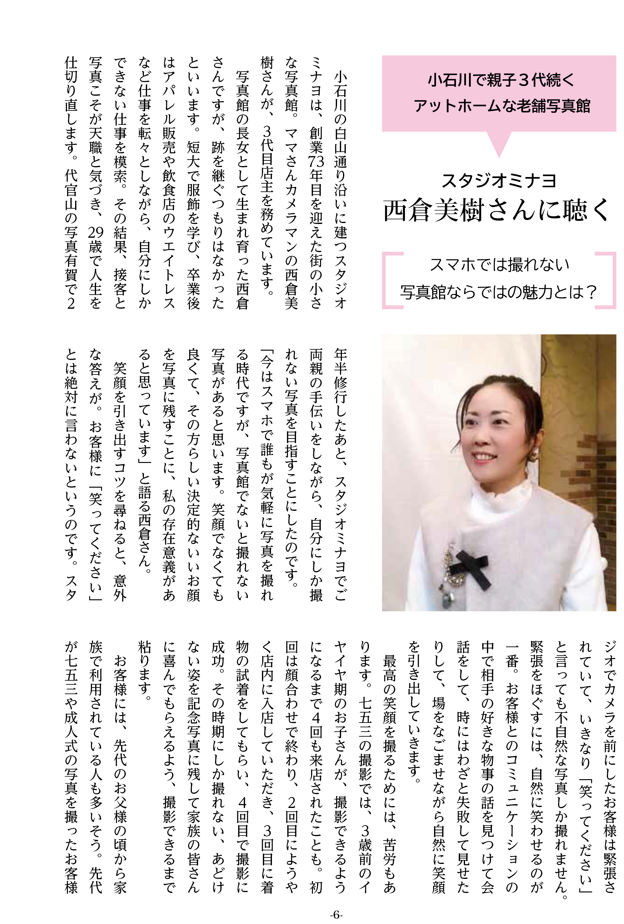 文京区育ちウン十年、初めて写真館スタジオミナヨ特集記事が組まれました