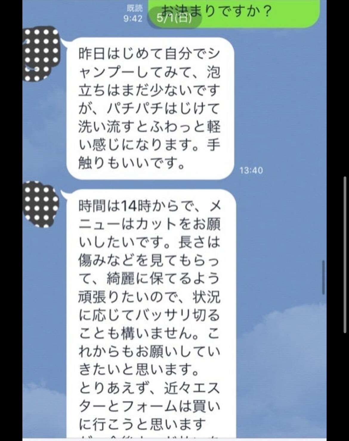 今使用中のオイルやクリームを止めるだけで、髪は変化して行きますよ。
