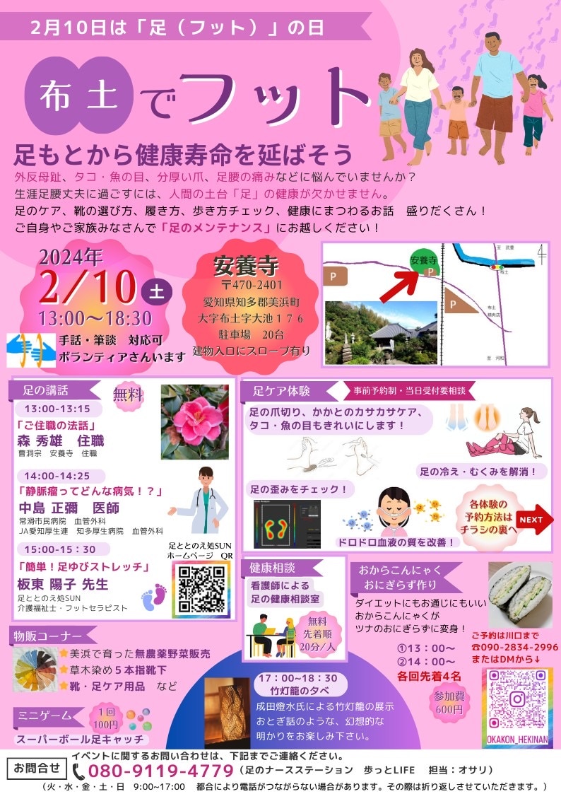 愛知県美浜町の布土(ふっと)町にあります、安養寺さんで、足イベントを行います!