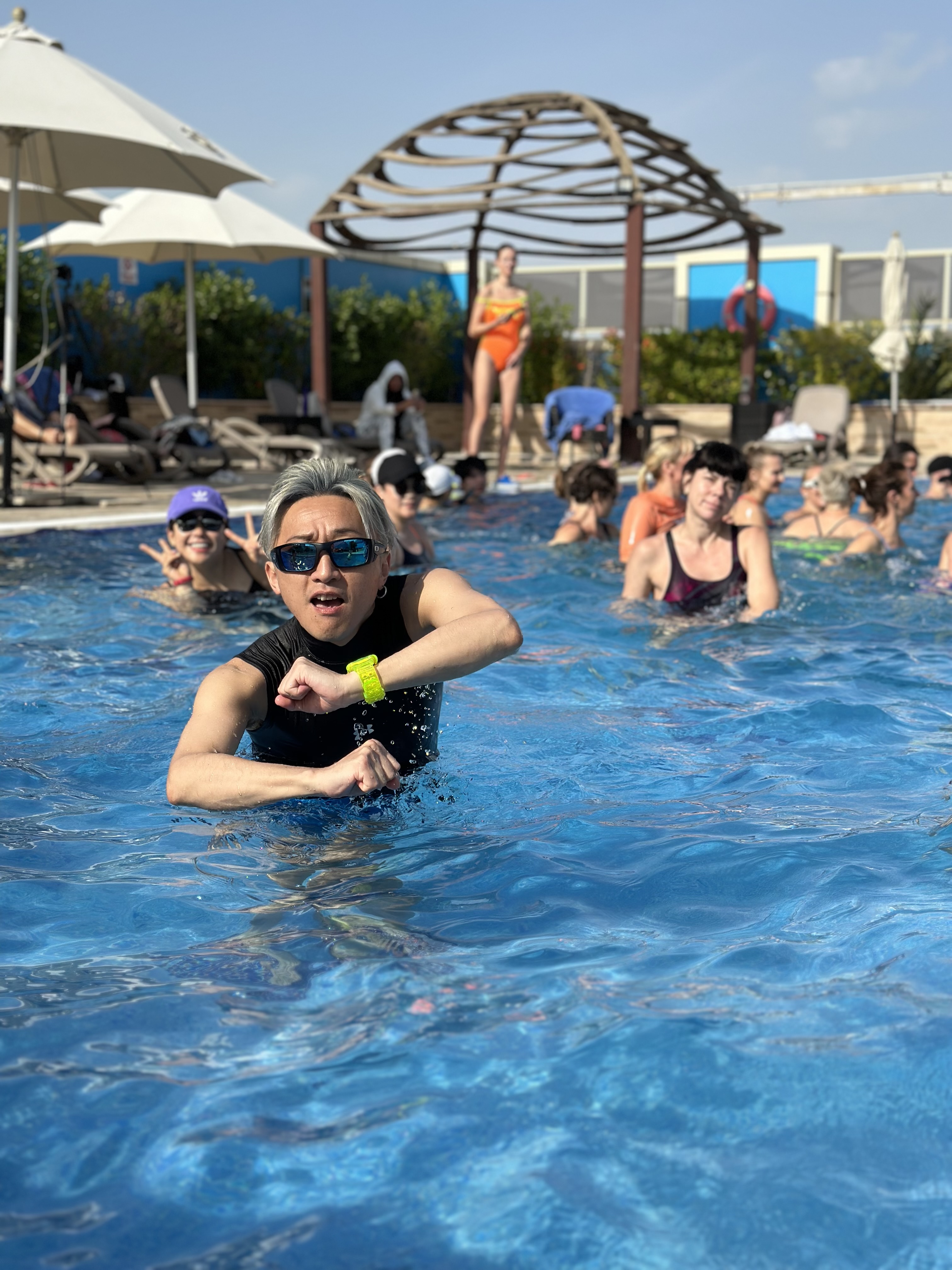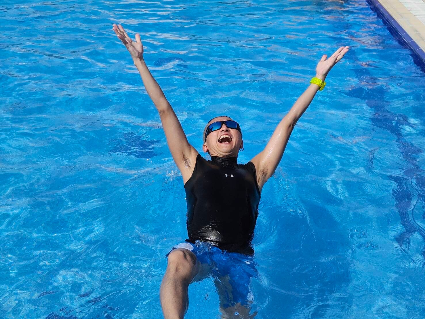 両手を水のプールの中に浸しているんですよ