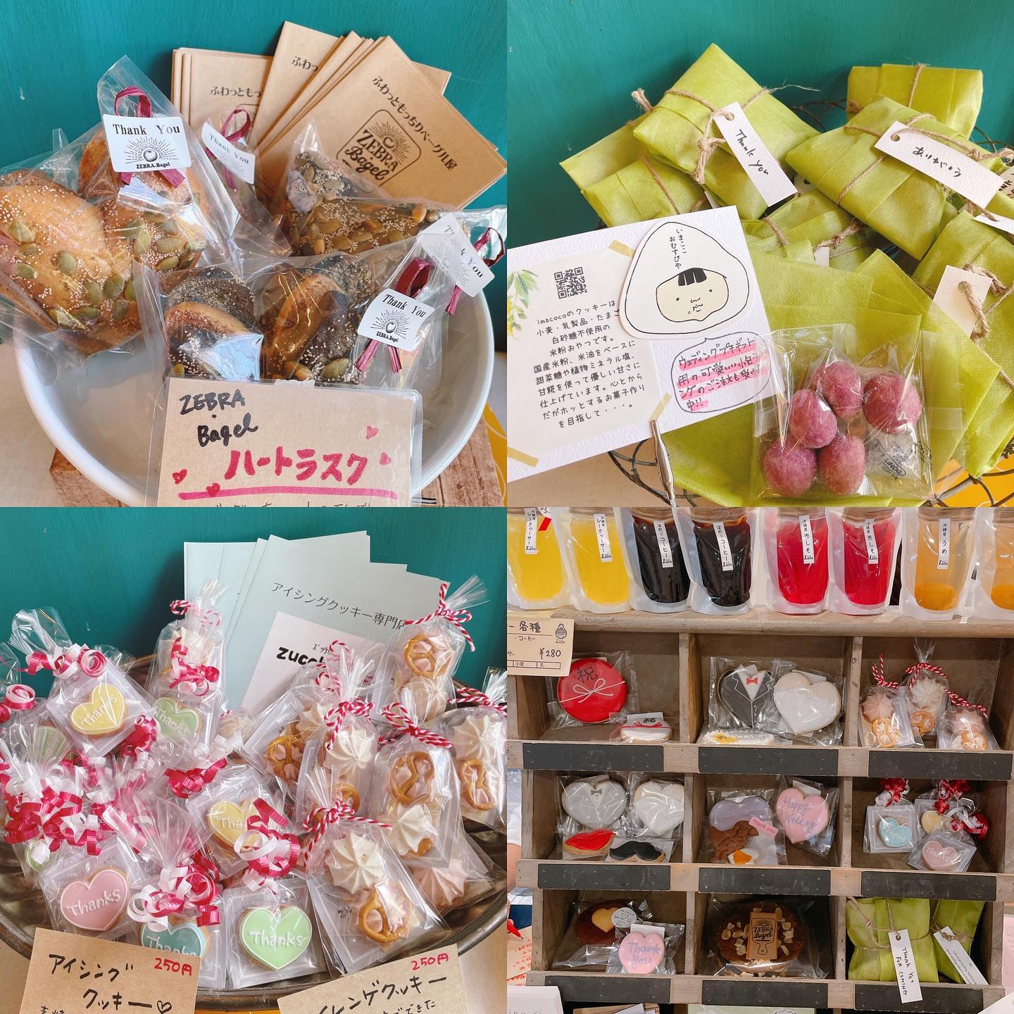 いつもお世話になっている、【おやつの実Lafra】さんのお菓子や、【ZEBRAベーグル】さん、【いまここ】さん、【ズッケロ】さん等々♪ウエディングプチギフト販売もとても好評でした♪♪