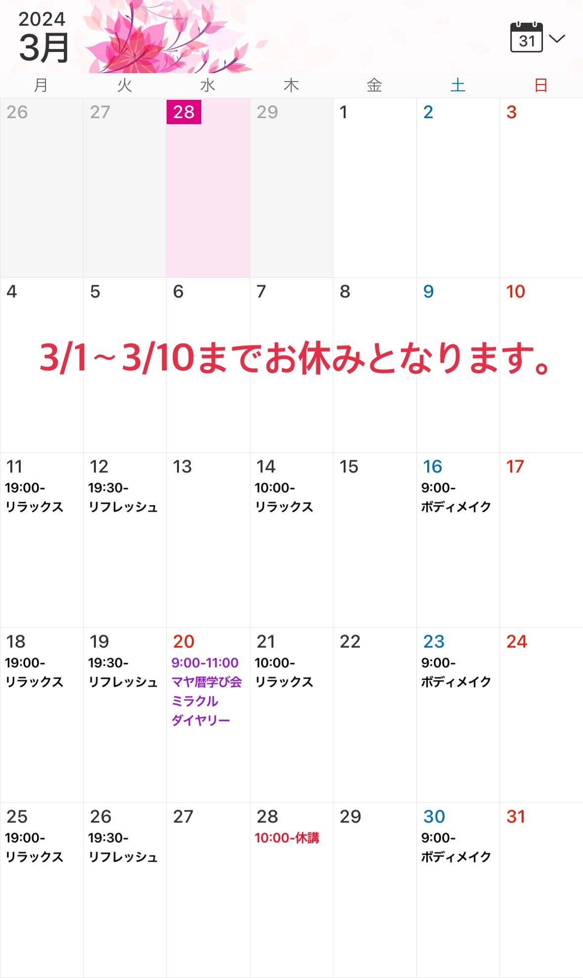 🌺3月 Ohanaスケジュール🌺