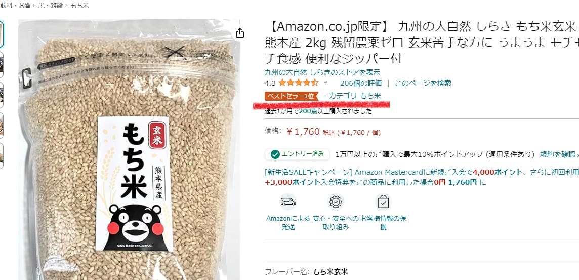 amazonのもち米部門で、うちの商品が一番売れています!