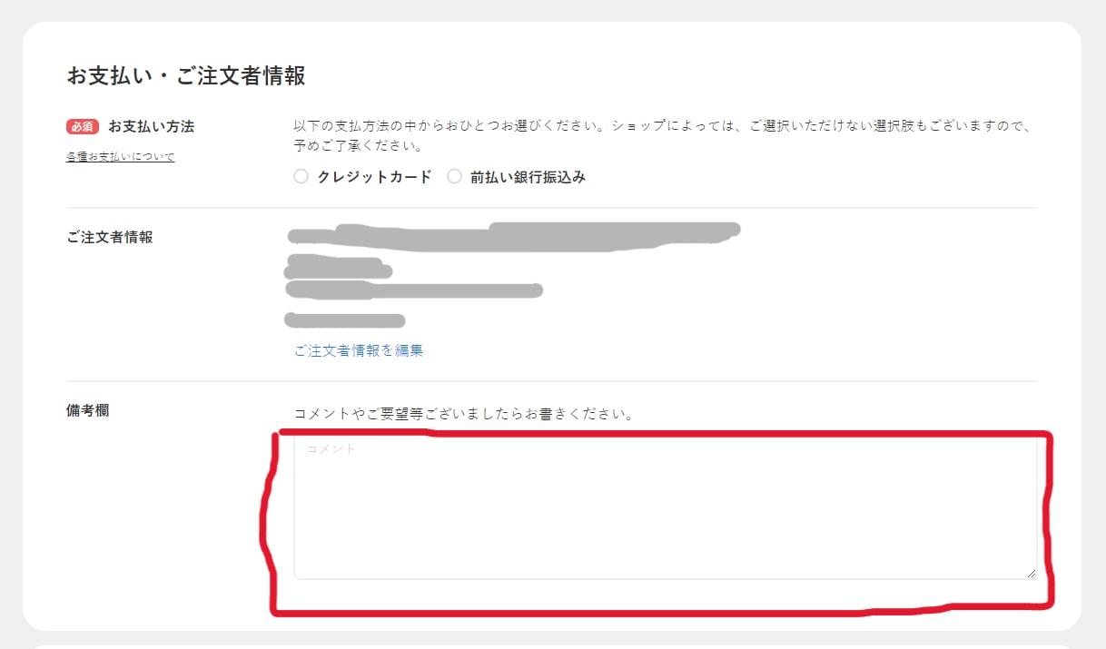 備考欄にお申し込み時のショップ・出演者名を記載してください。