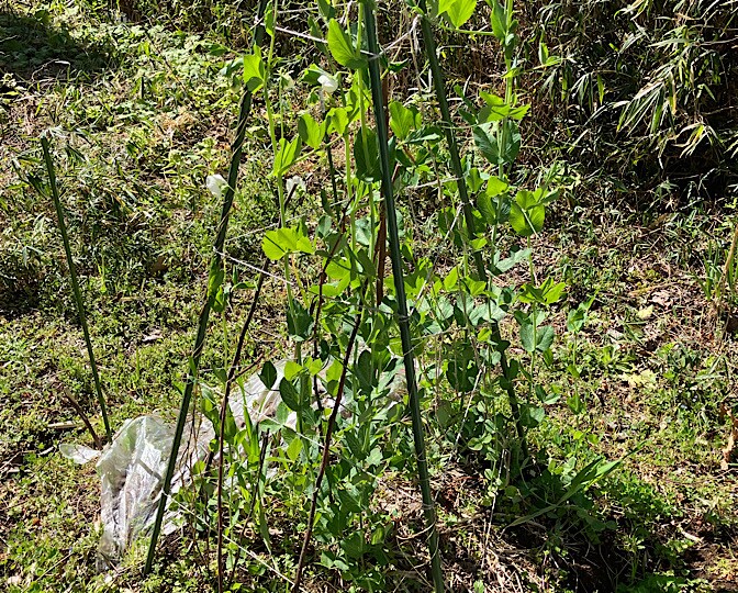 2月は暖かかったので、スナップエンドウも草も伸びて来たかなーー???
