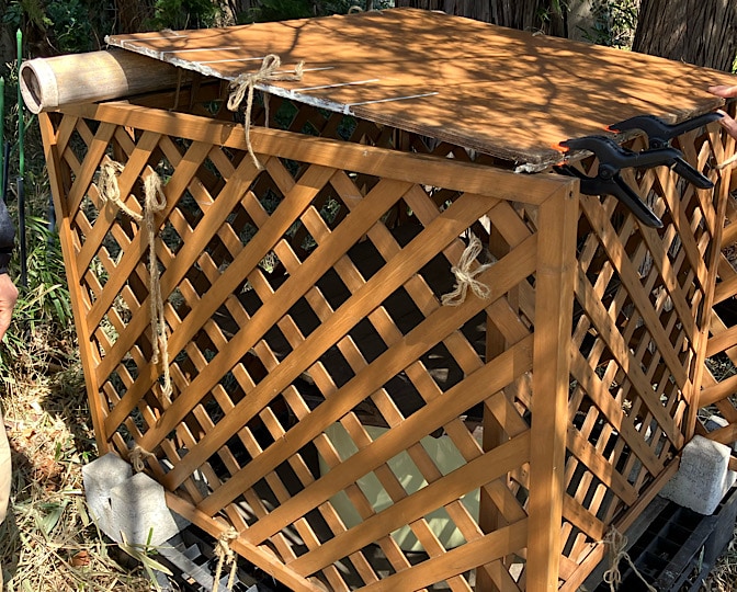 この後は、ラティスの屋根の修理をします。