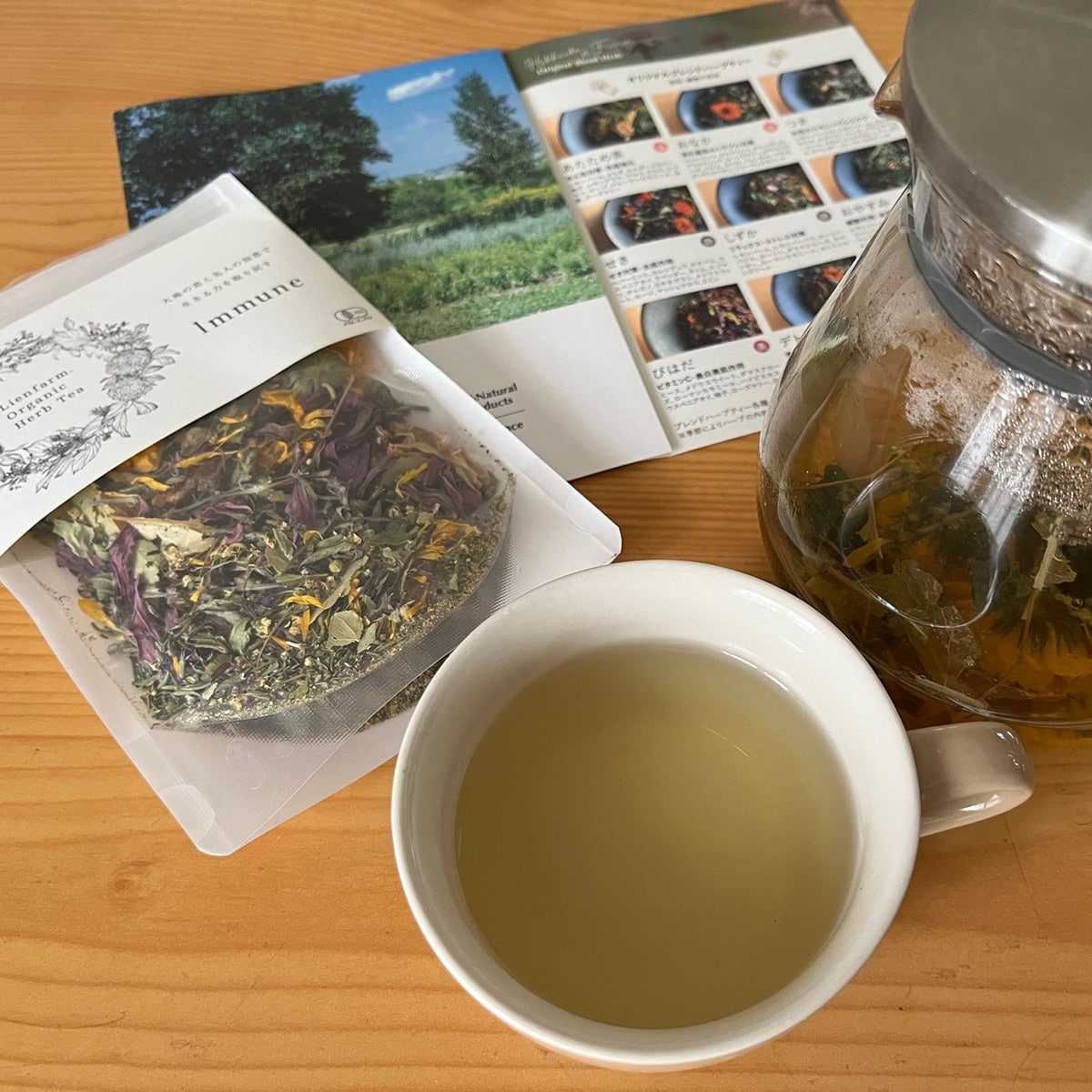 原材料名:有機レモンバーベナ(北海道産)、有機ホーソン、有機バジル、有機マージョラム、有機コーンフラワー、有機ラベンダー、有機プリムローズ、
