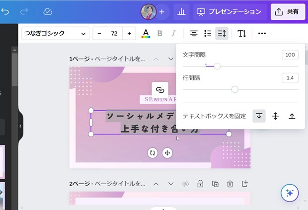 Canvaで文字や行の間隔を詰めたい時は?